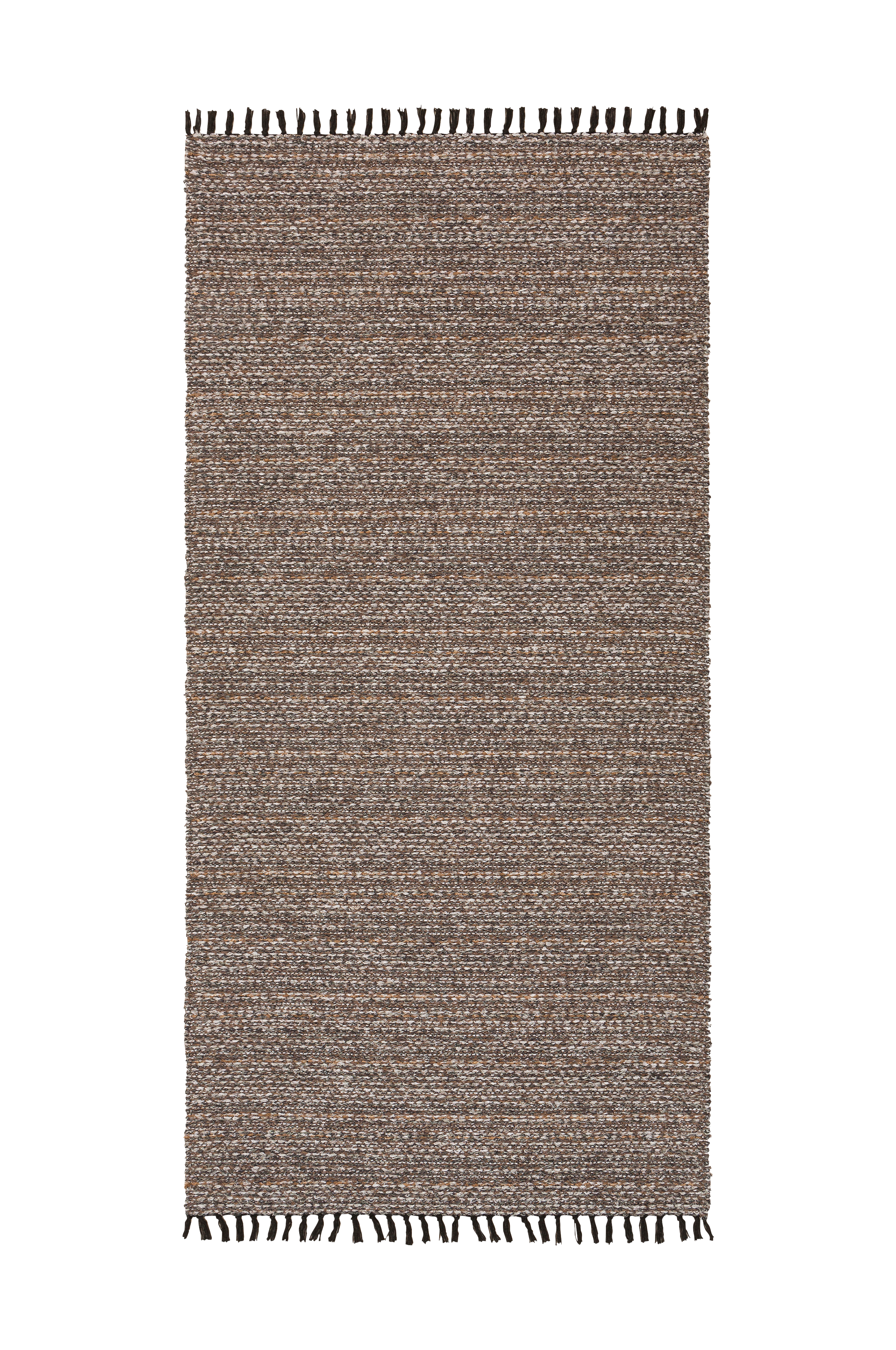 Erittäin ryhdikäs ja eläväpintainen Tova-lankamatto pehmeää puuvillasekoitetta. Upeana yksityiskohtana mustat solmitut hapsut.