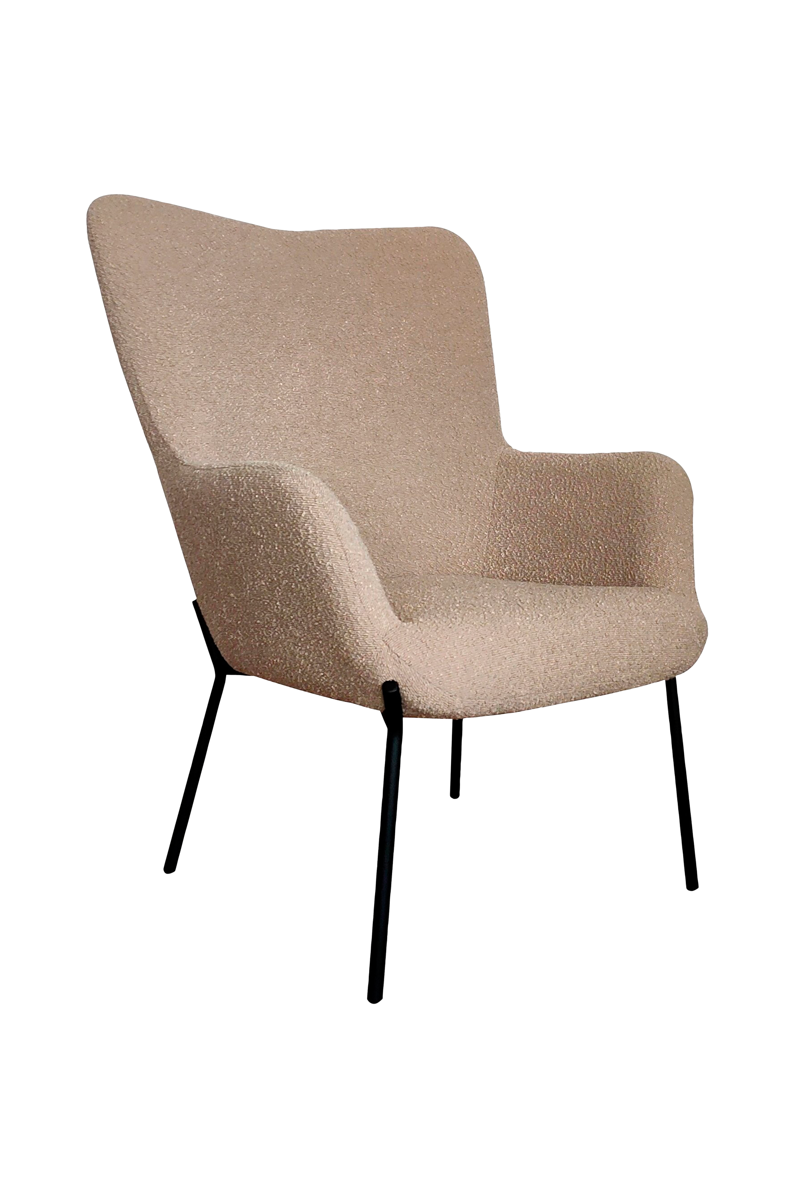 Tuoli, jossa bukleekangas ja mustat jalat.
