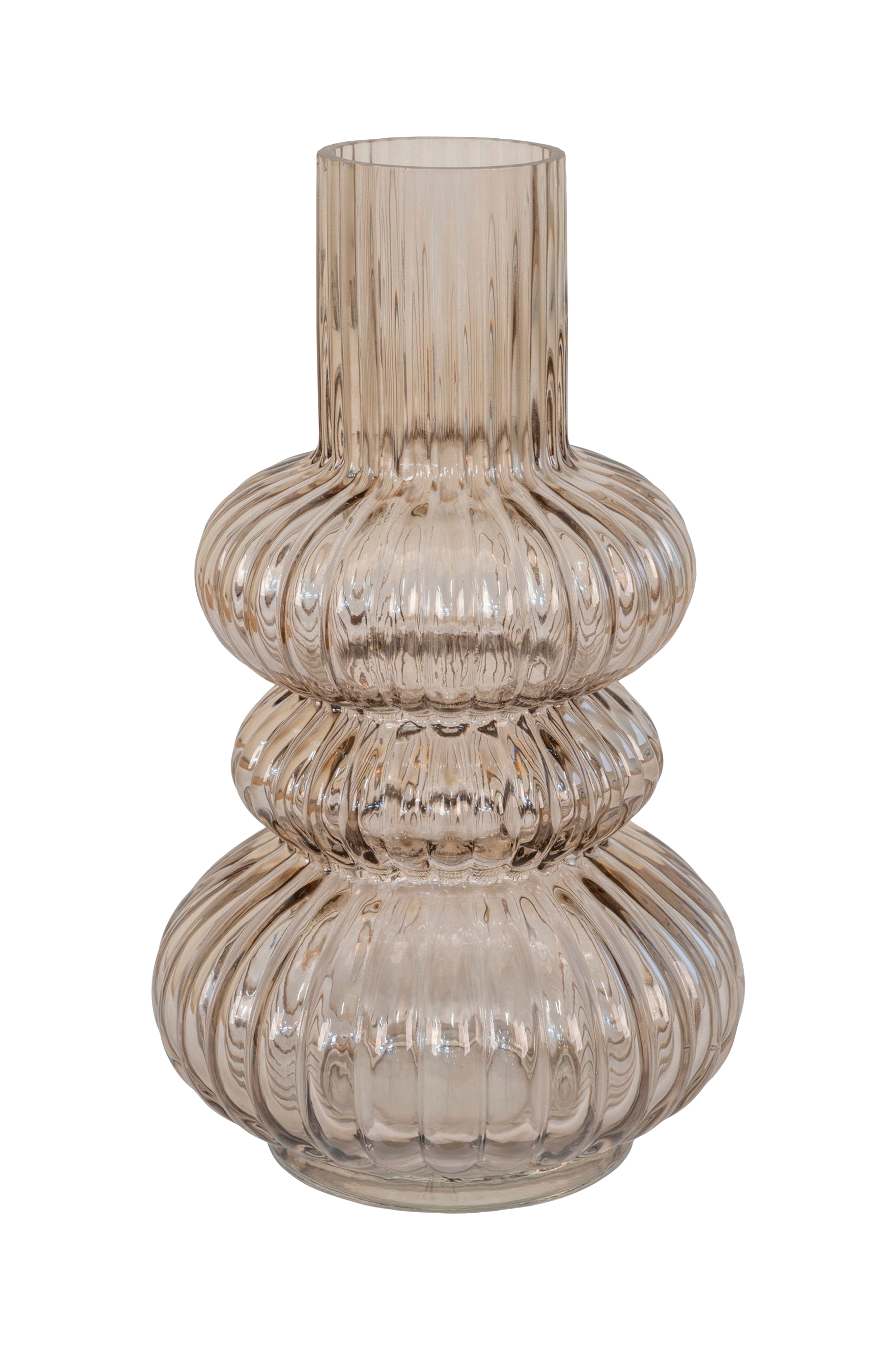 Maljakko suupuhallettua lasia. Mitat: Halkaisija 15 x korkeus 25 cm.