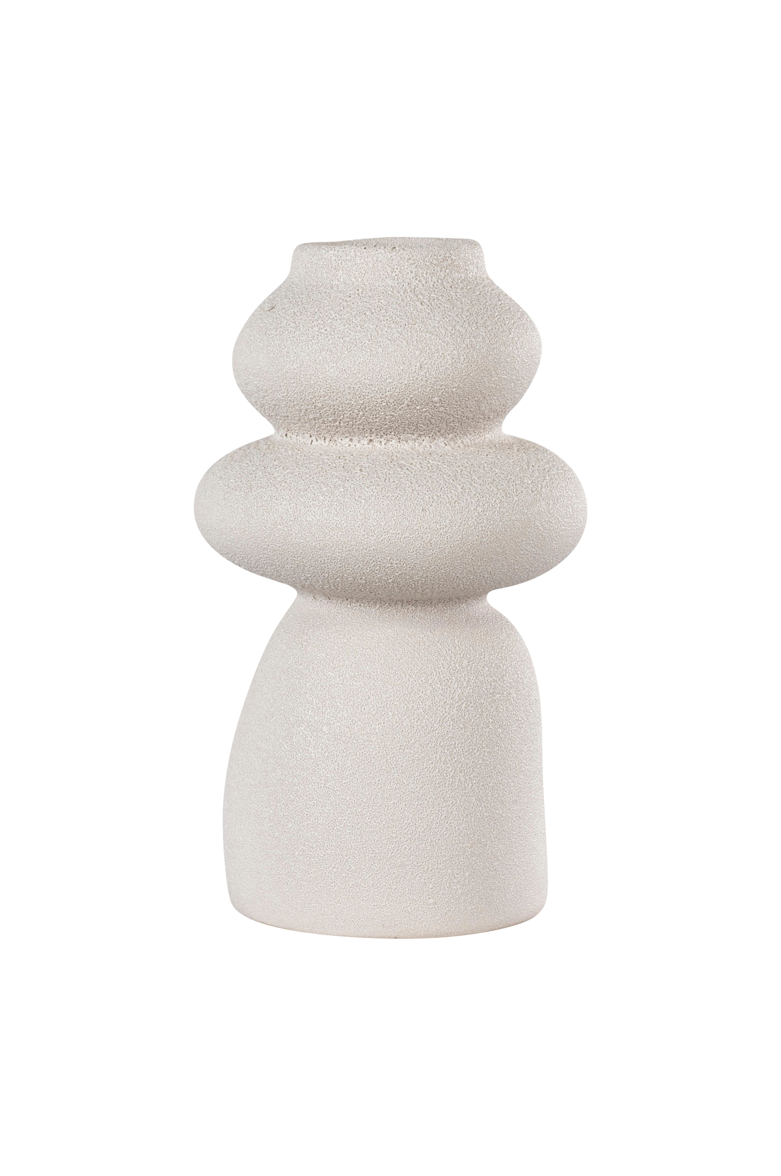 Pyöreä beige maljakko keramiikkaa, halkaisija 14,5x26,5 cm.