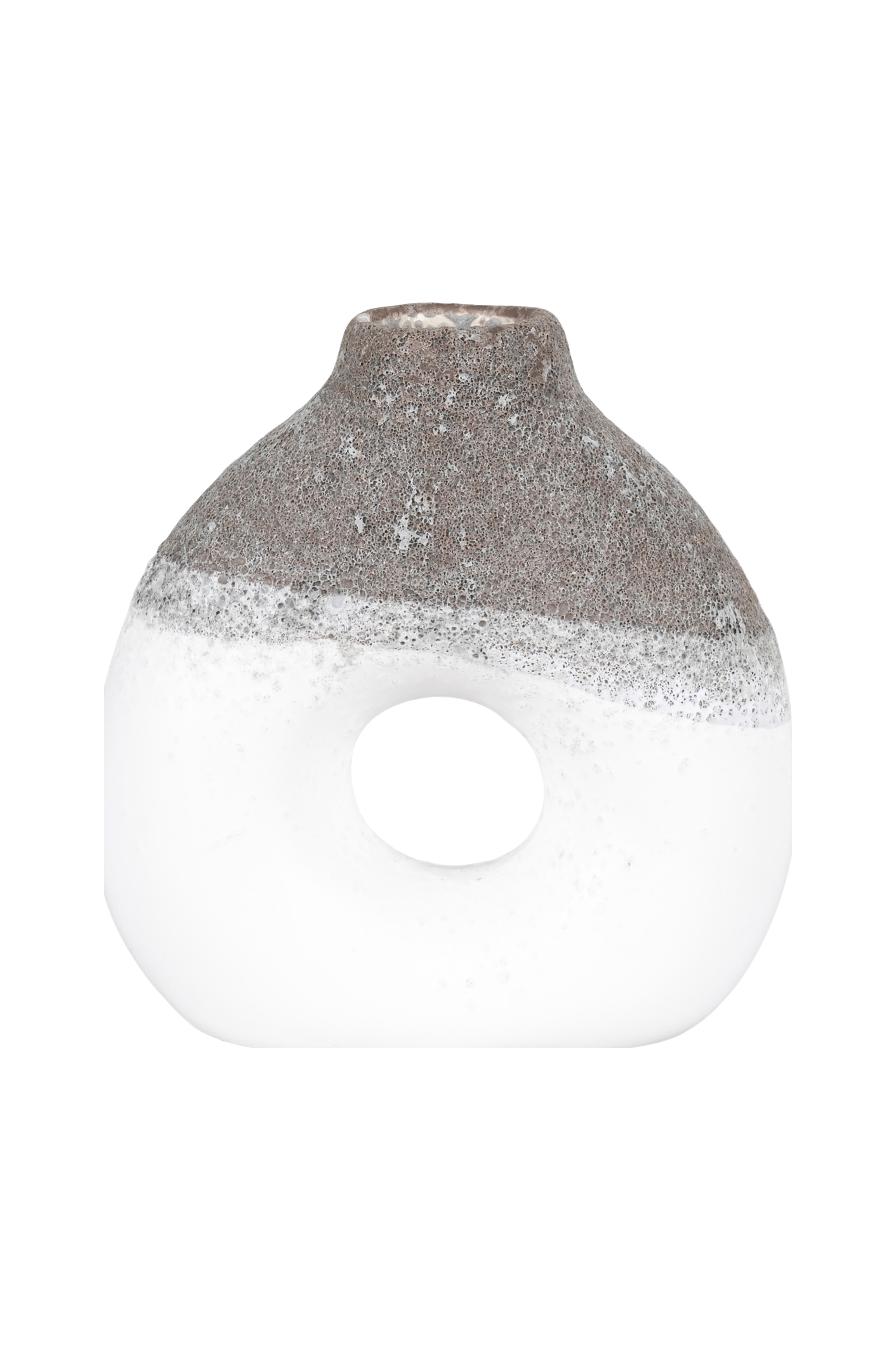Maljakko keramiikkaa, ruskea/valkoinen, 13x6x14 cm.