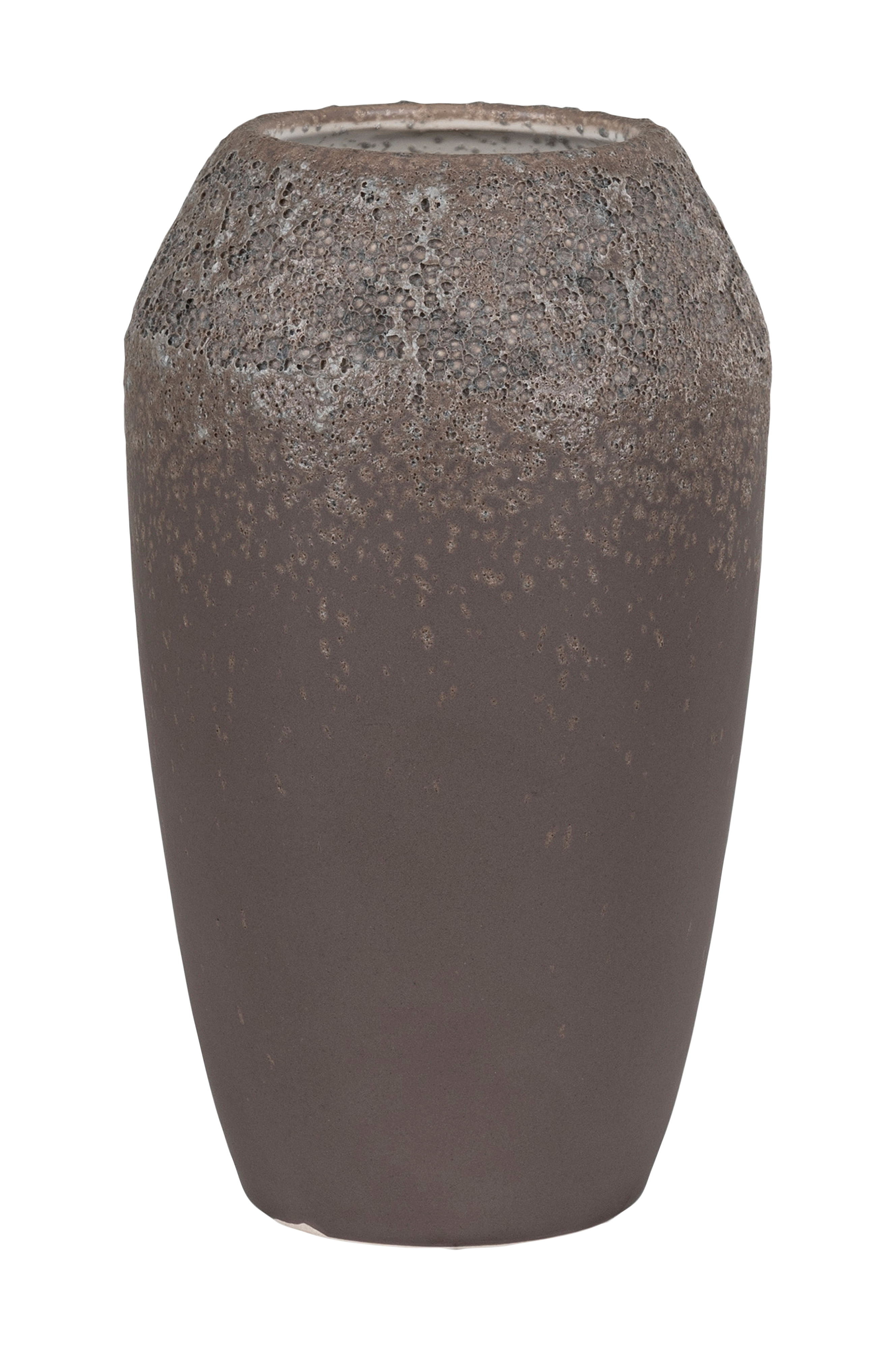 Pyöreä ruskea maljakko keramiikkaa, halkaisija 13x22 cm.