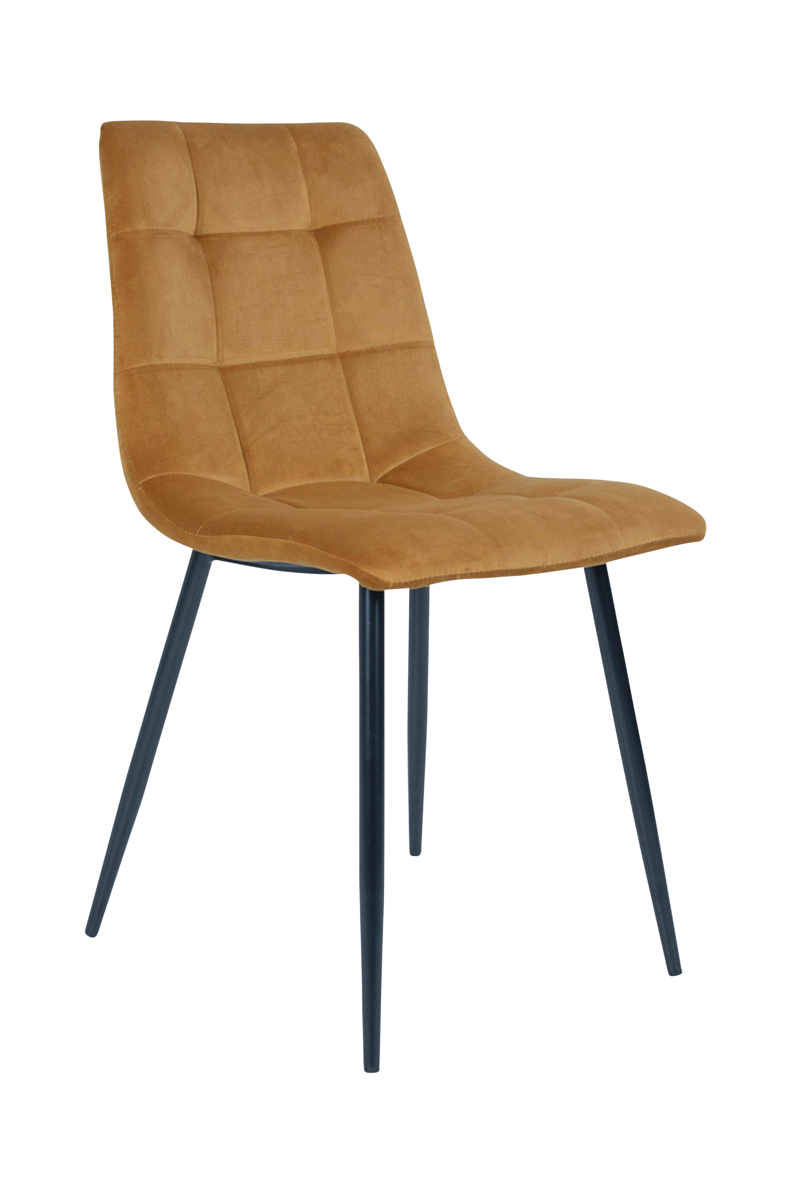 Tuoli, jossa samettiverhoilu ja teräsjalat. Materiaali: sametti, teräs
