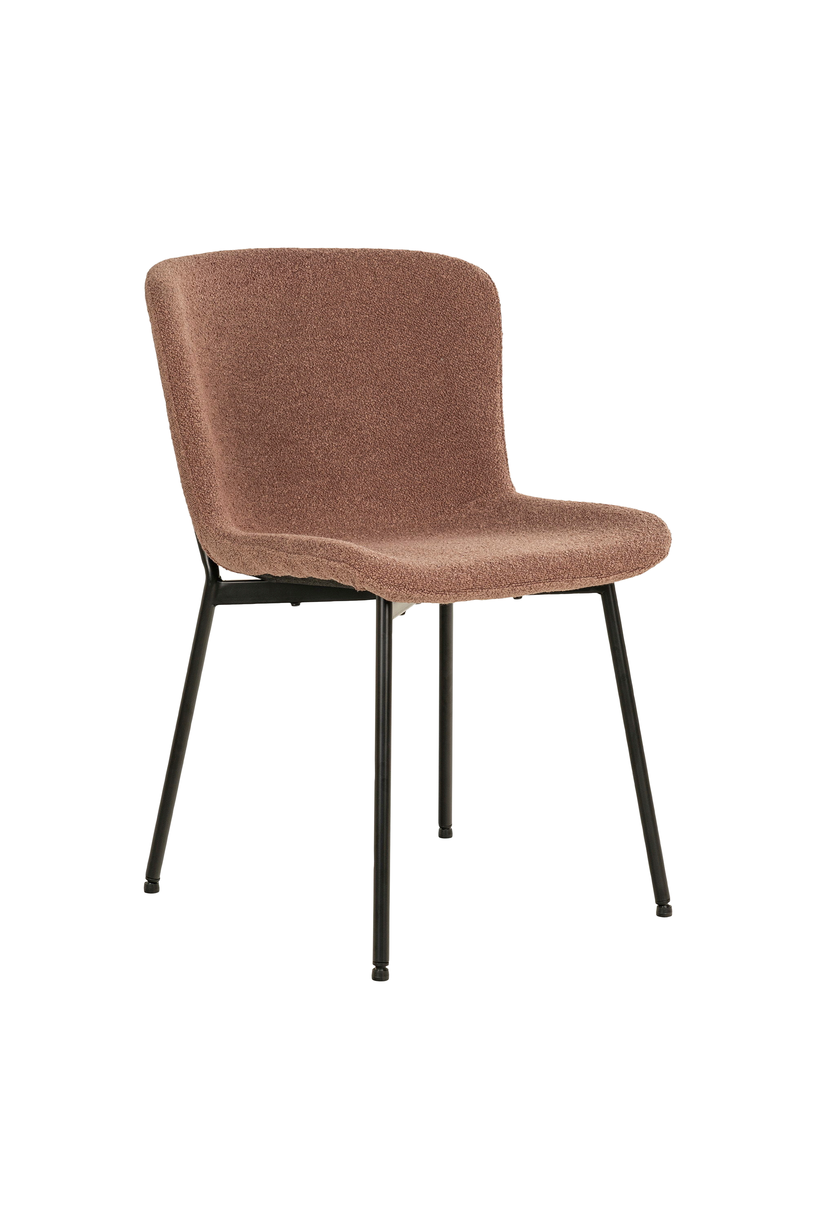 Ruokapöydän tuoli, jossa bukleekangas ja mustat jalat.