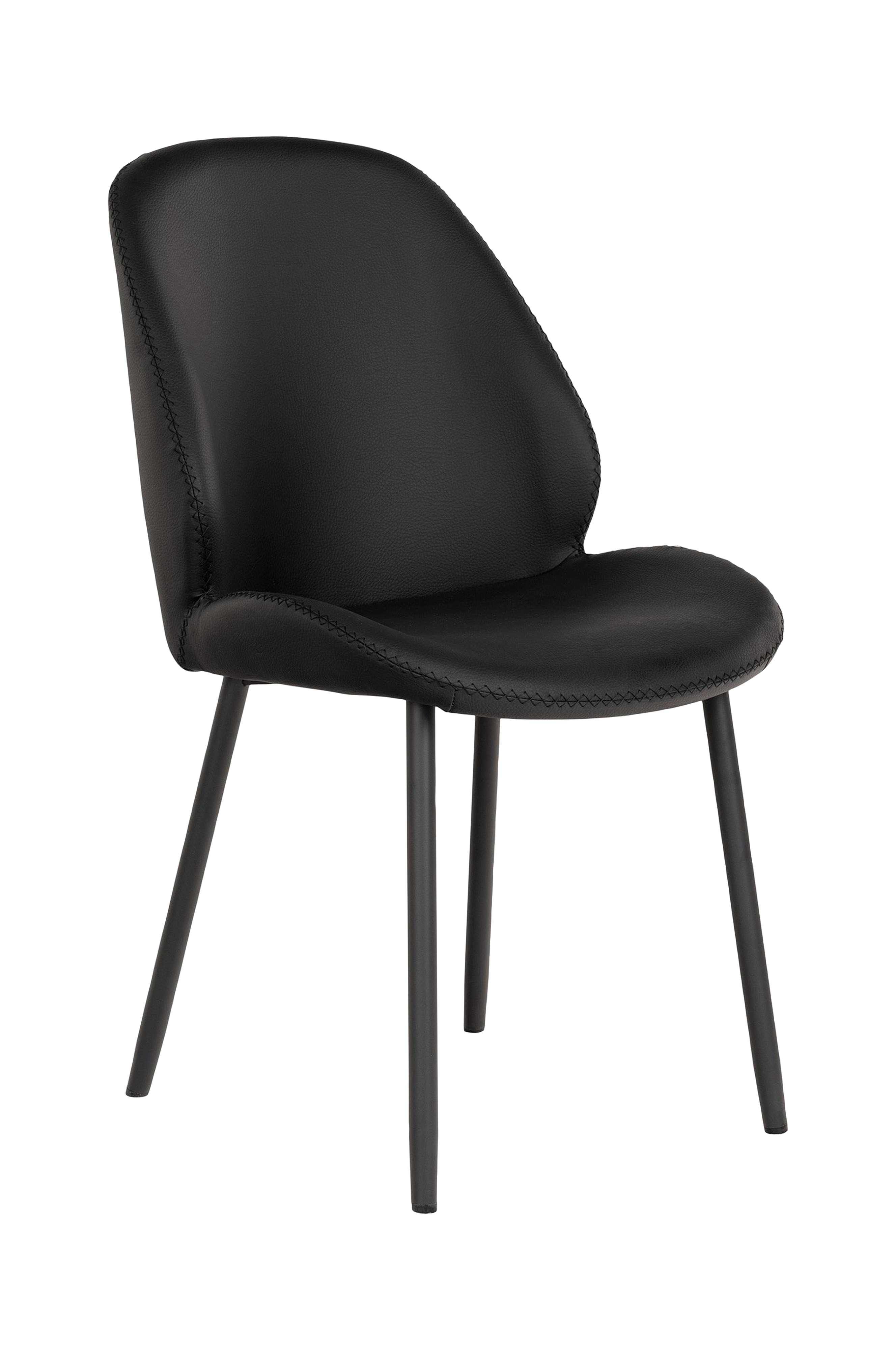 Ruokapöydän tuoli, jossa polyuretaaniverhoilu ja mustat jalat.