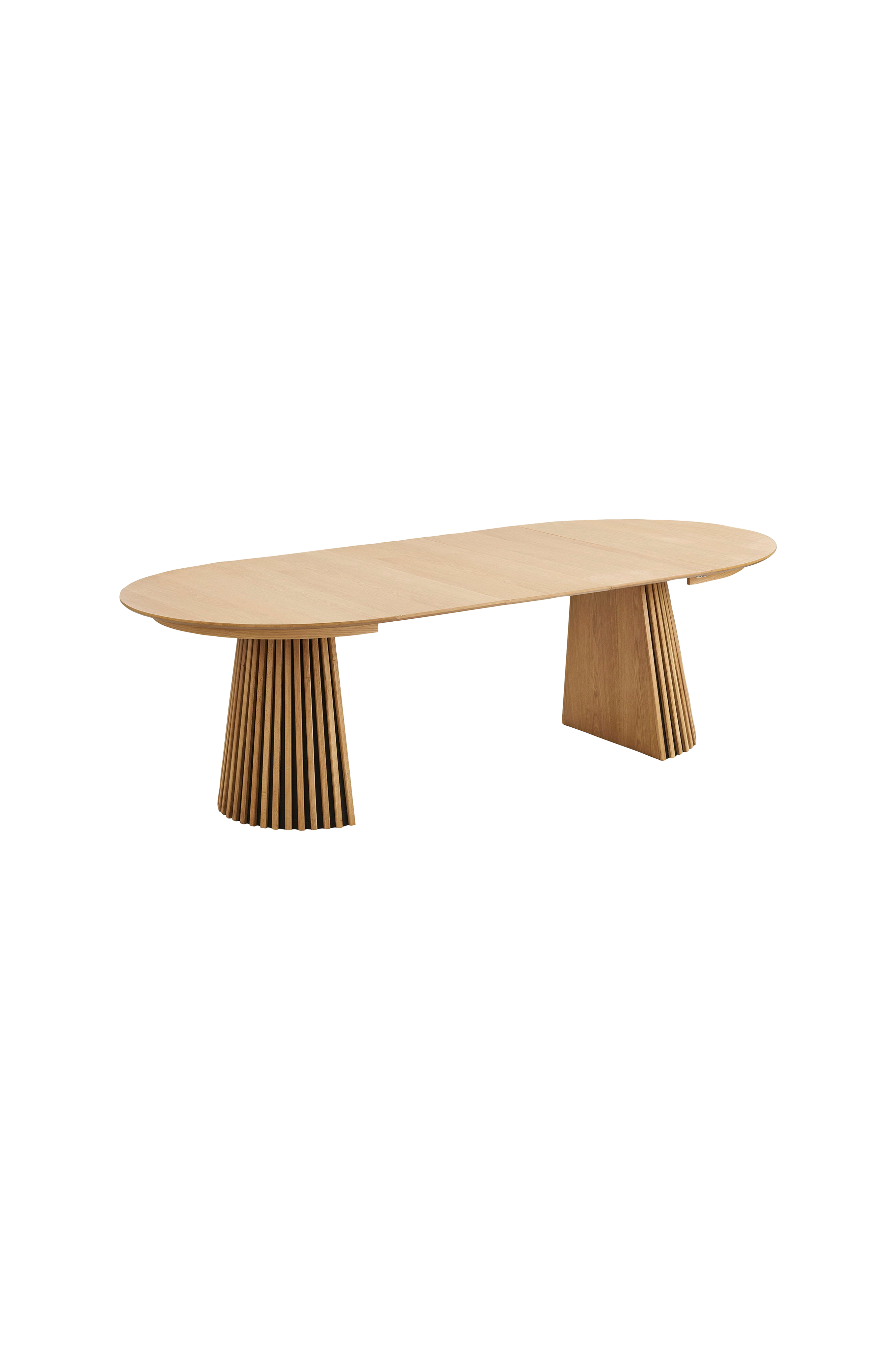 Ruokapöytä, tammiviilu, sis. kolme jatkolevyä, ø120x120-160-200-240x75 cm