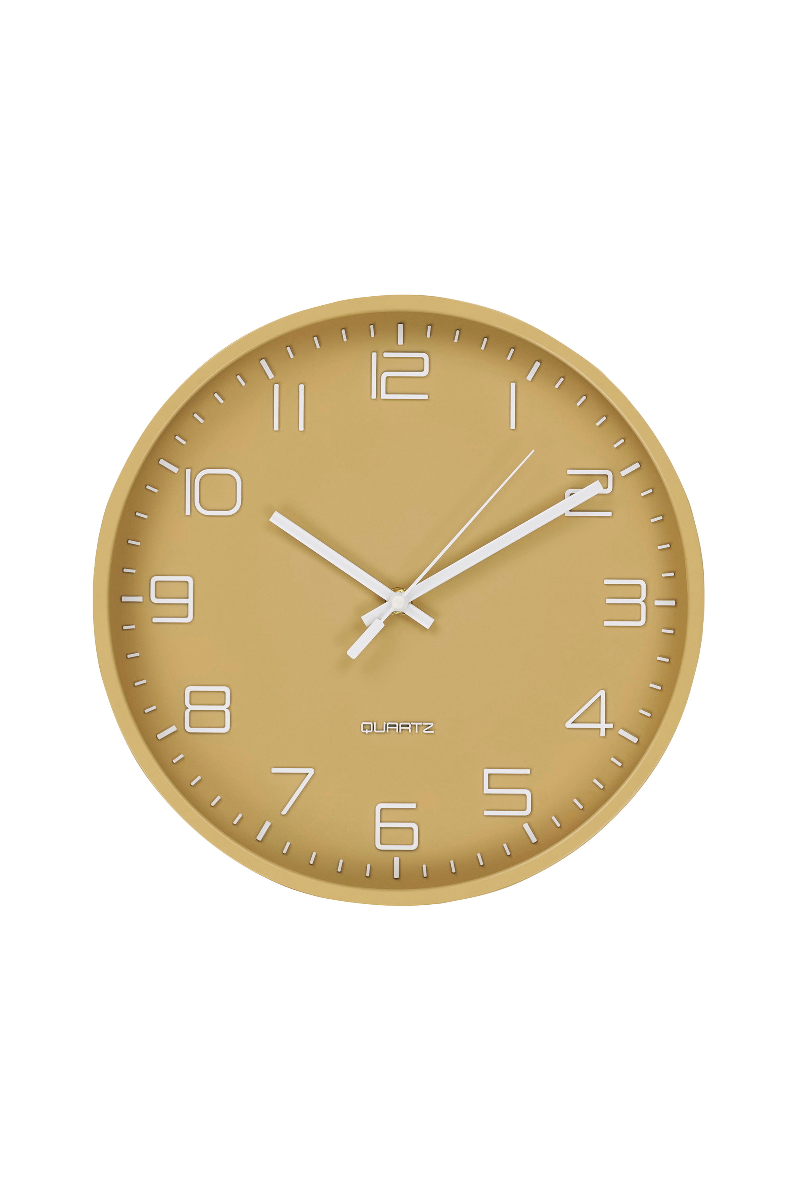 Pieni, söpö ja hiljainen seinäkello. Etsin sinapinkeltaista ja tämä oli paras löytämäni, himmeä/vaalea okran väri.