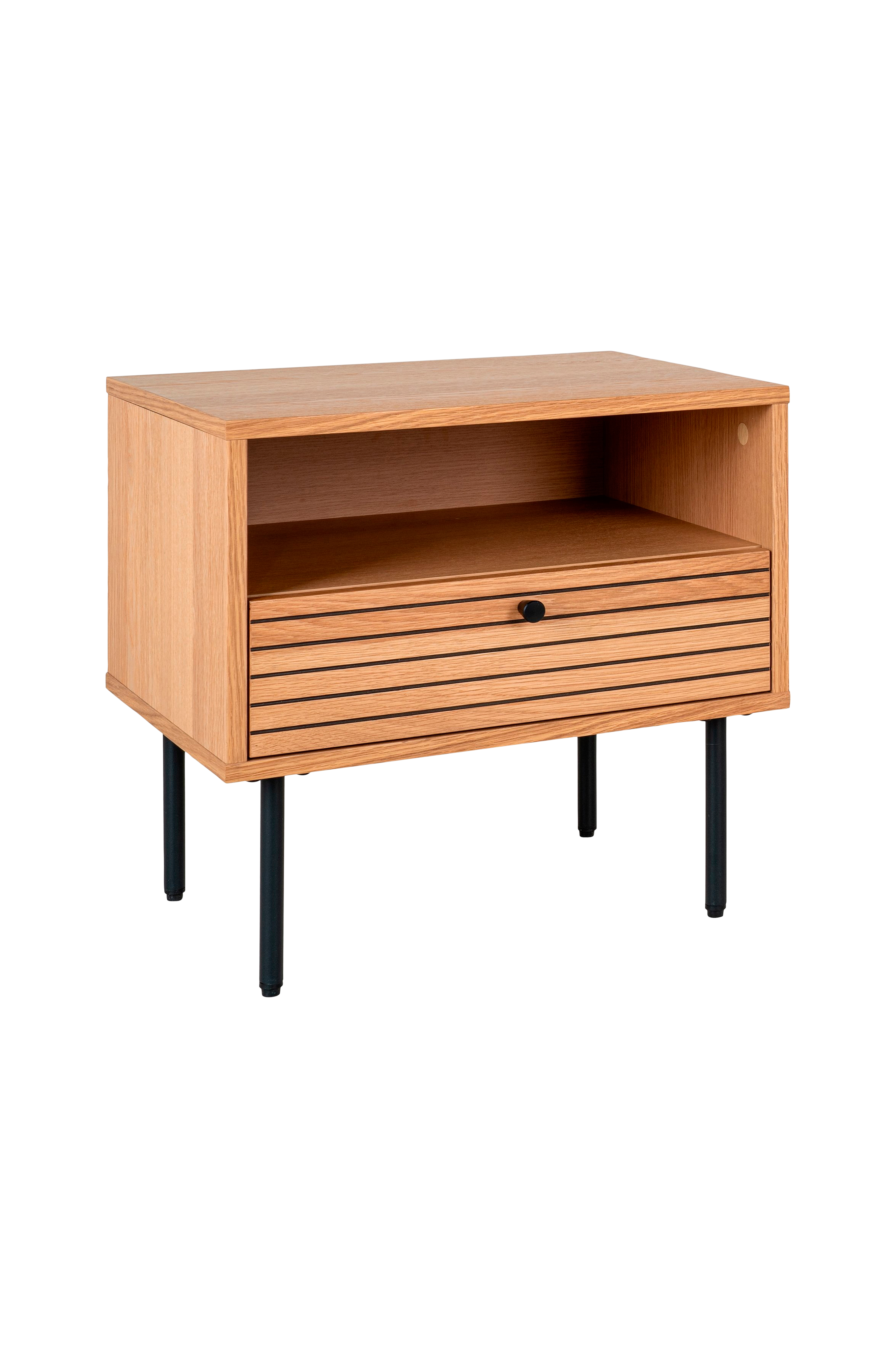 Sivupöytä, tammiviilu, mustat metallijalat, 1 laatikko, 50x40x50 cm
