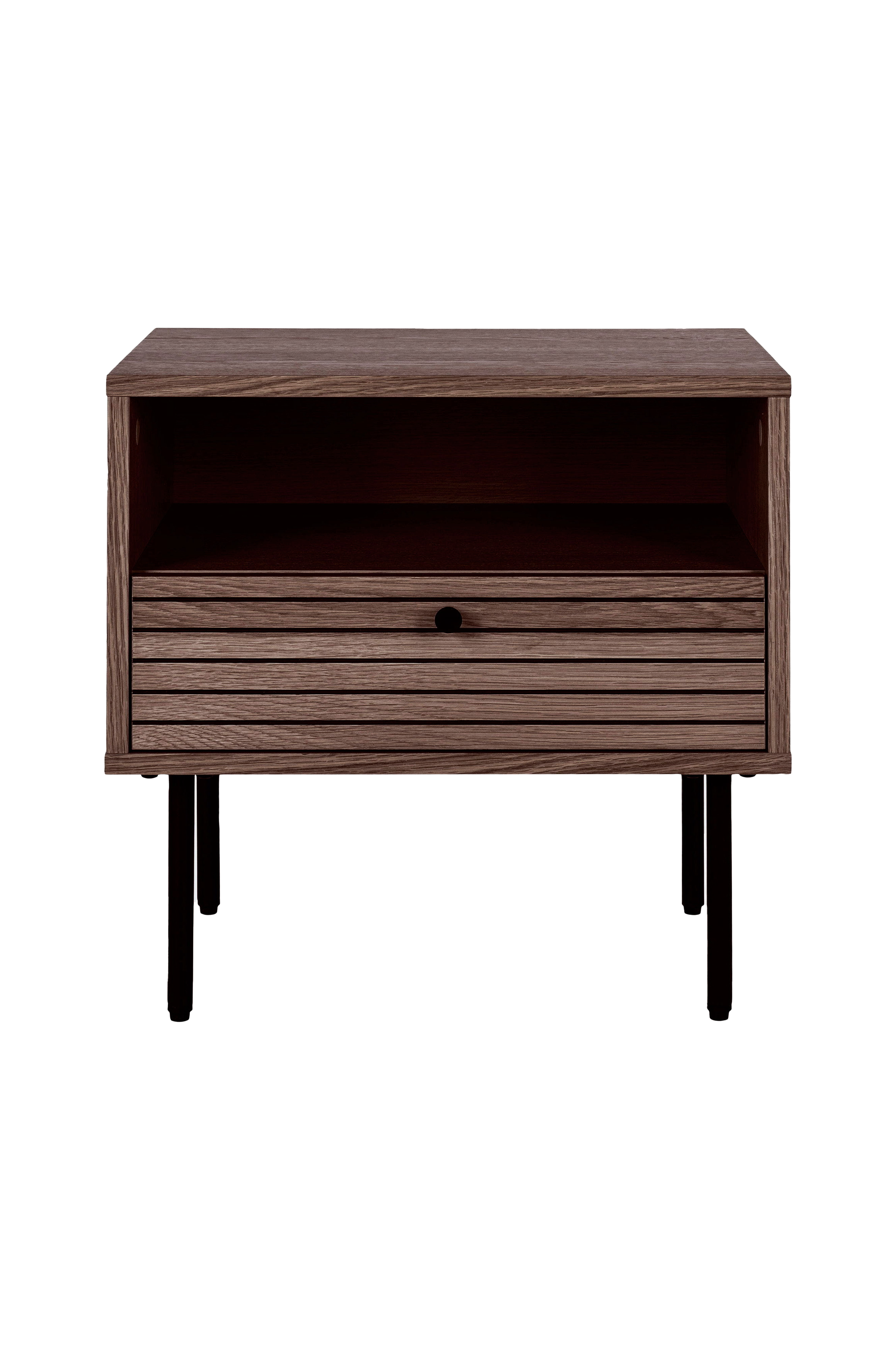 Sivupöytä, 1 laatikko, tammiviilu, metallijalat 50x40x50 cm