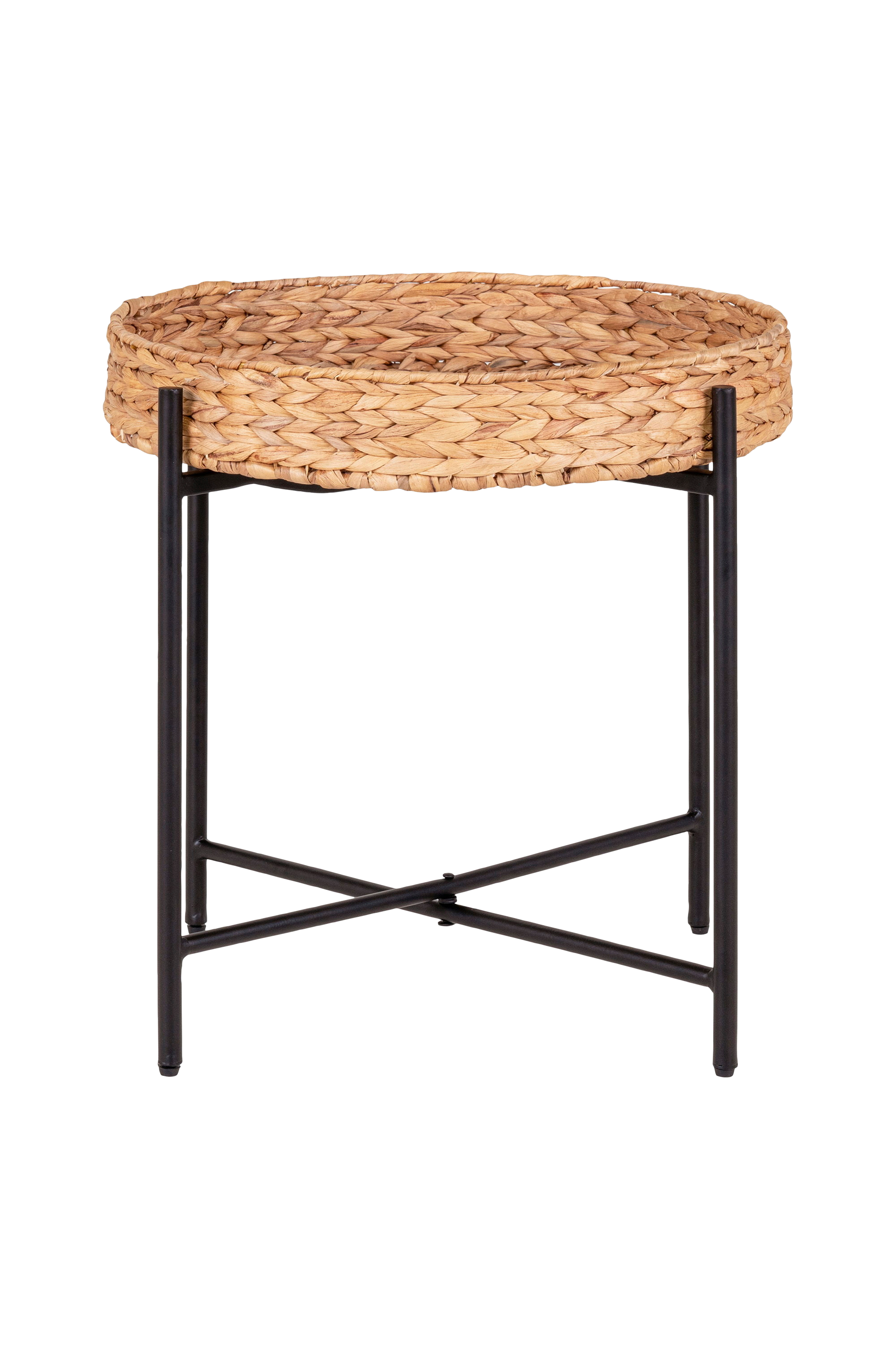 Pyöreä sivupöytä metallia ja vesihyasinttia, halkaisija 50x48,5 cm.