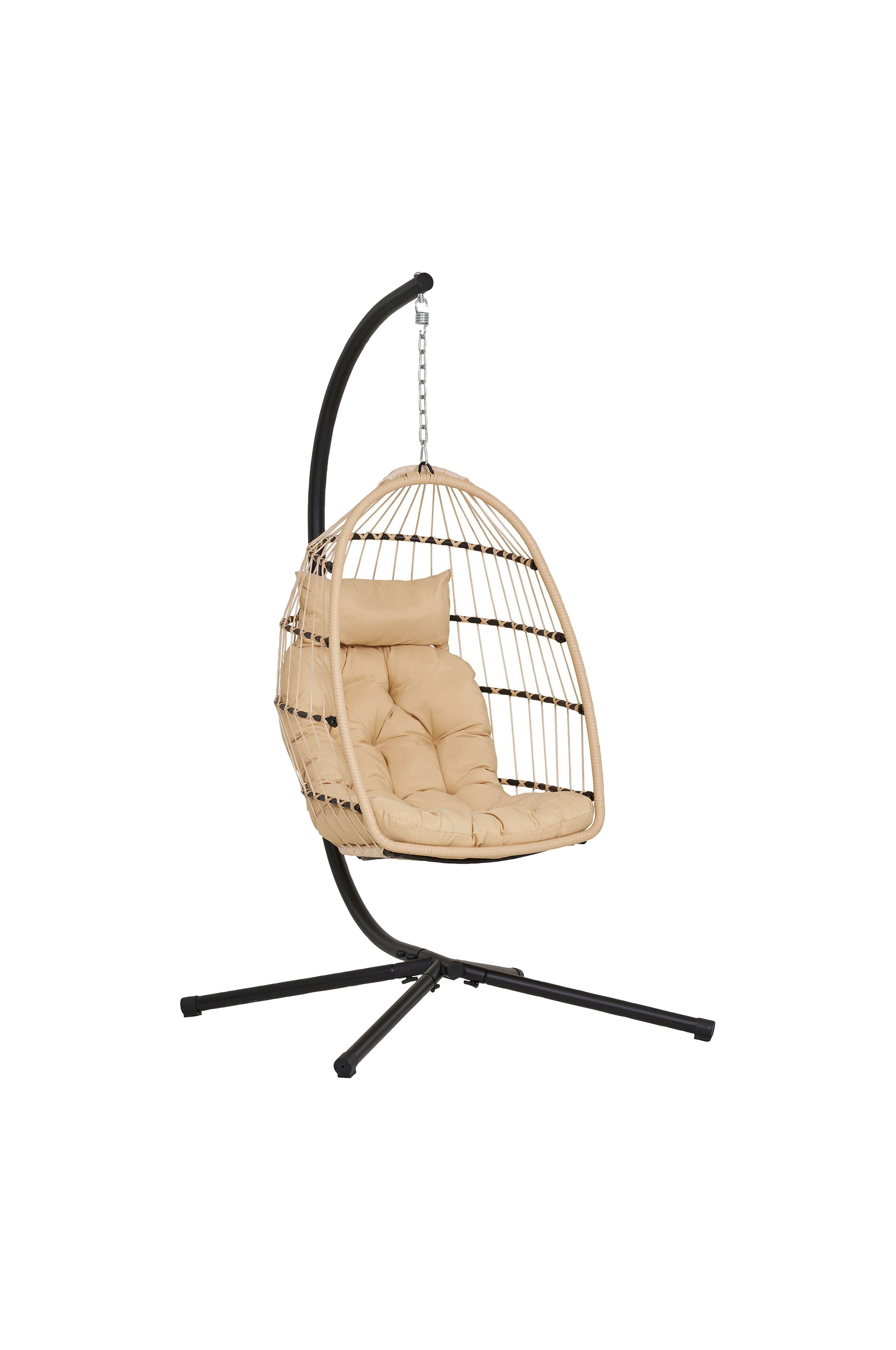Ripustettava tuoli, teräsjalusta, kokoontaitettava istuin, sis.tyynyt, luonnollinen/musta, 195x117x107 cm.
