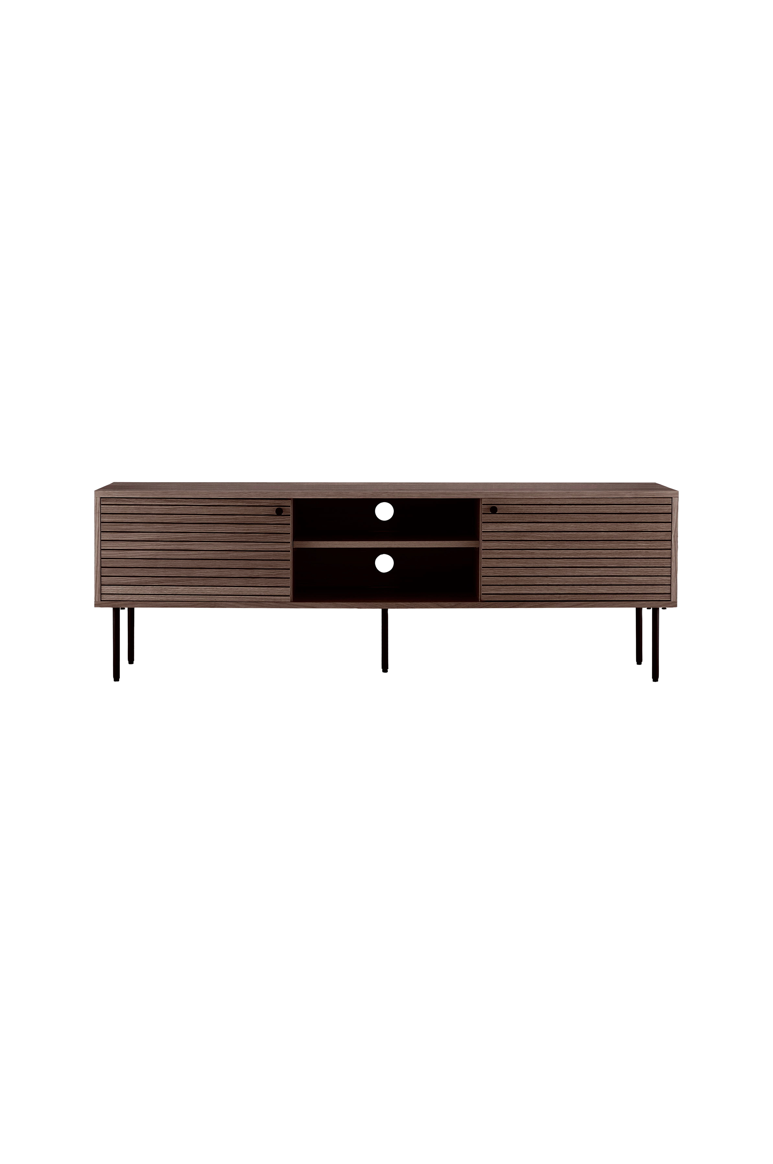 Tv-penkki, 2 ovea, 2 hyllyä, tammiviilu, metallijalat 150x40x50 cm