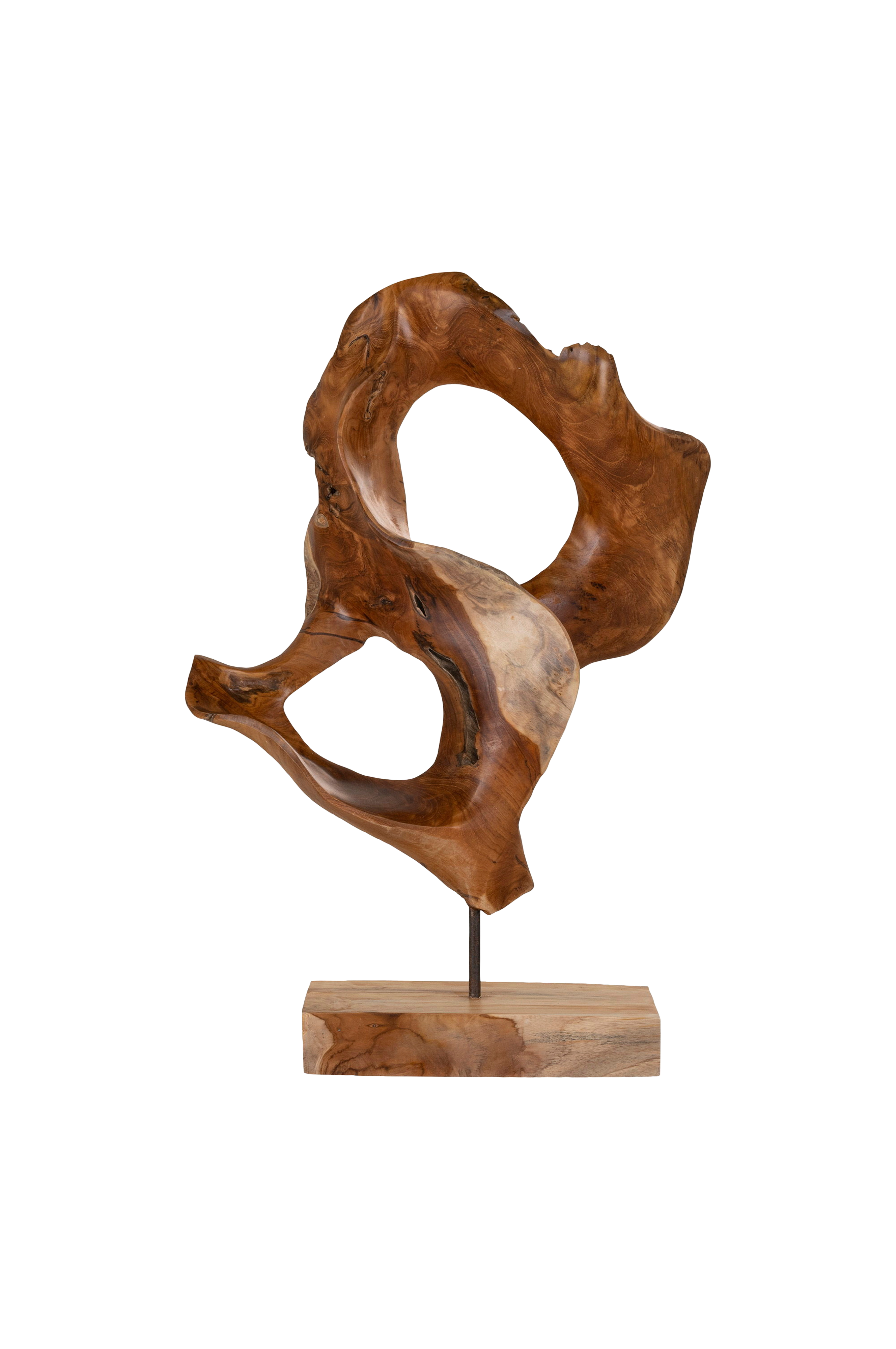 Tiikkiveistos, jossa ainutlaatuinen, orgaaninen muoto. 30x20x60 cm.