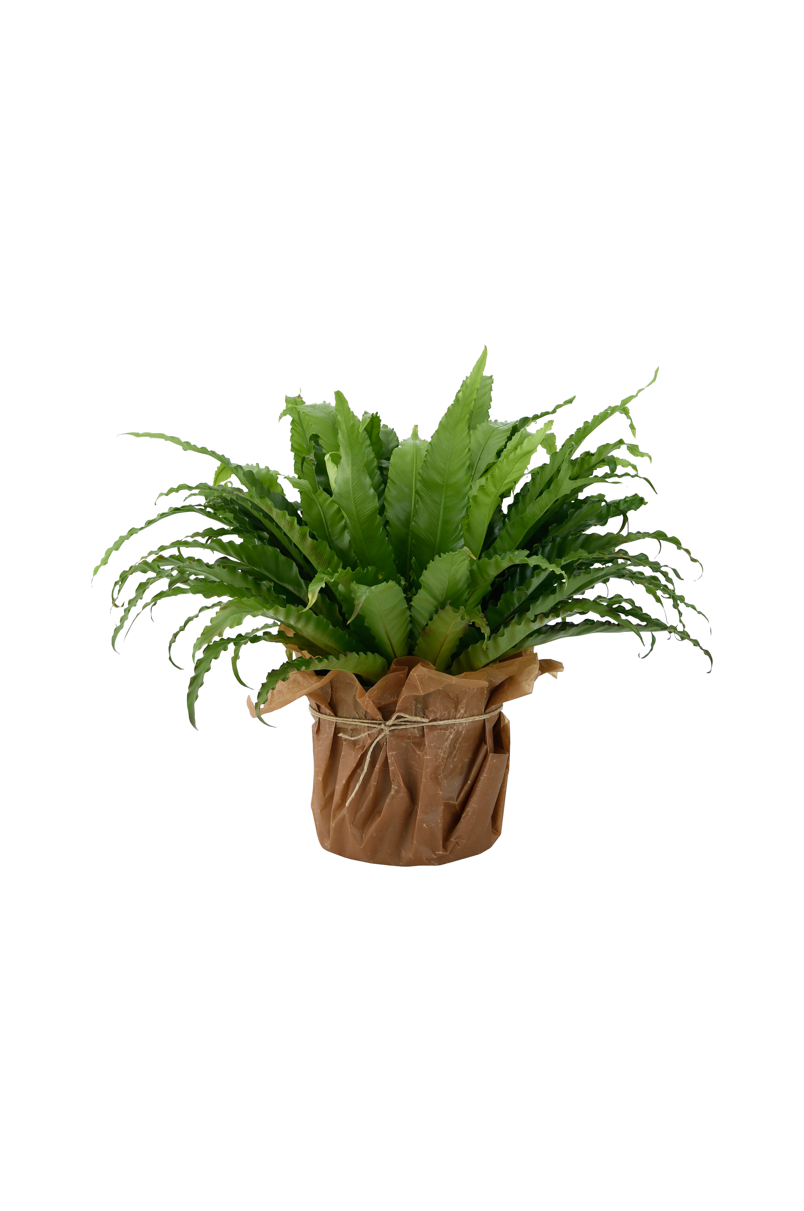 Pitkät, vaaleanvihreät, kiiltävät lehdet, joiden aaltomaiset reunat muodostavat suppilon muotoisen rusetin. Multa pidetään tasaisen kosteana, ei saa päästää kuivahtamaan. Suihkuta lehtiä usein, mikäli huoneessa on kuiva ilma. Korkeus 70 cm ja ruukun halkaisija 30 cm.