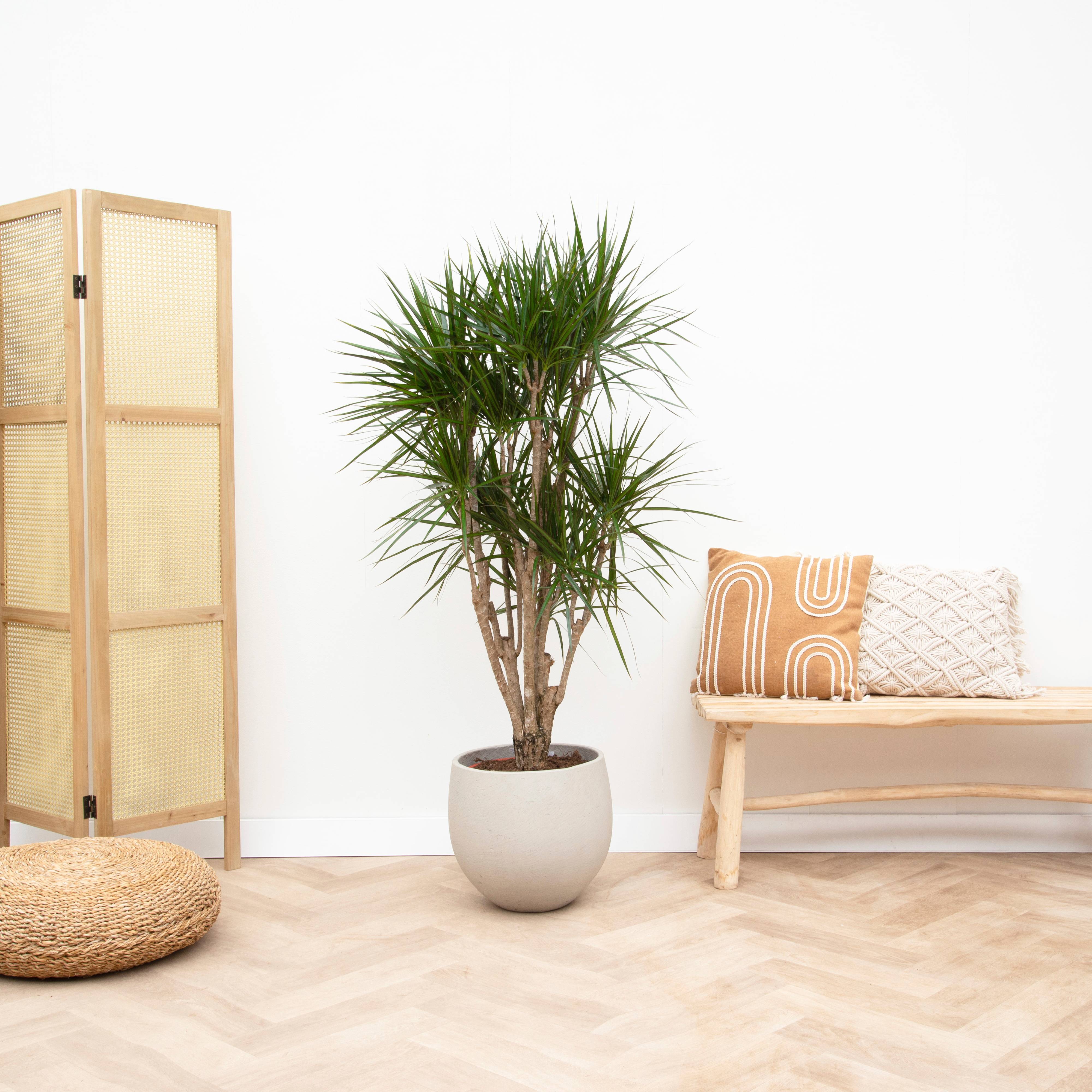 Haarautunut Dracaena Anita, jota kutsutaan myös lohikäärmepuuksi, on fantastinen ja näyttävä sekä myös erittäin helppohoitoinen huonekasvi. Täydellinen viherkasvi, mikäli et ole viherpeukalo tai sinulla on vähän aikaa kasvin hoitoon. Lohikäärmepuuta tulee kastella vain kerran 3-6 viikon välein. Korkeus 180 cm. Ruukun halkaisija 40 cm. Koristeruukku ei sisälly toimitukseen. Tuoksu: ei tuoksua.
