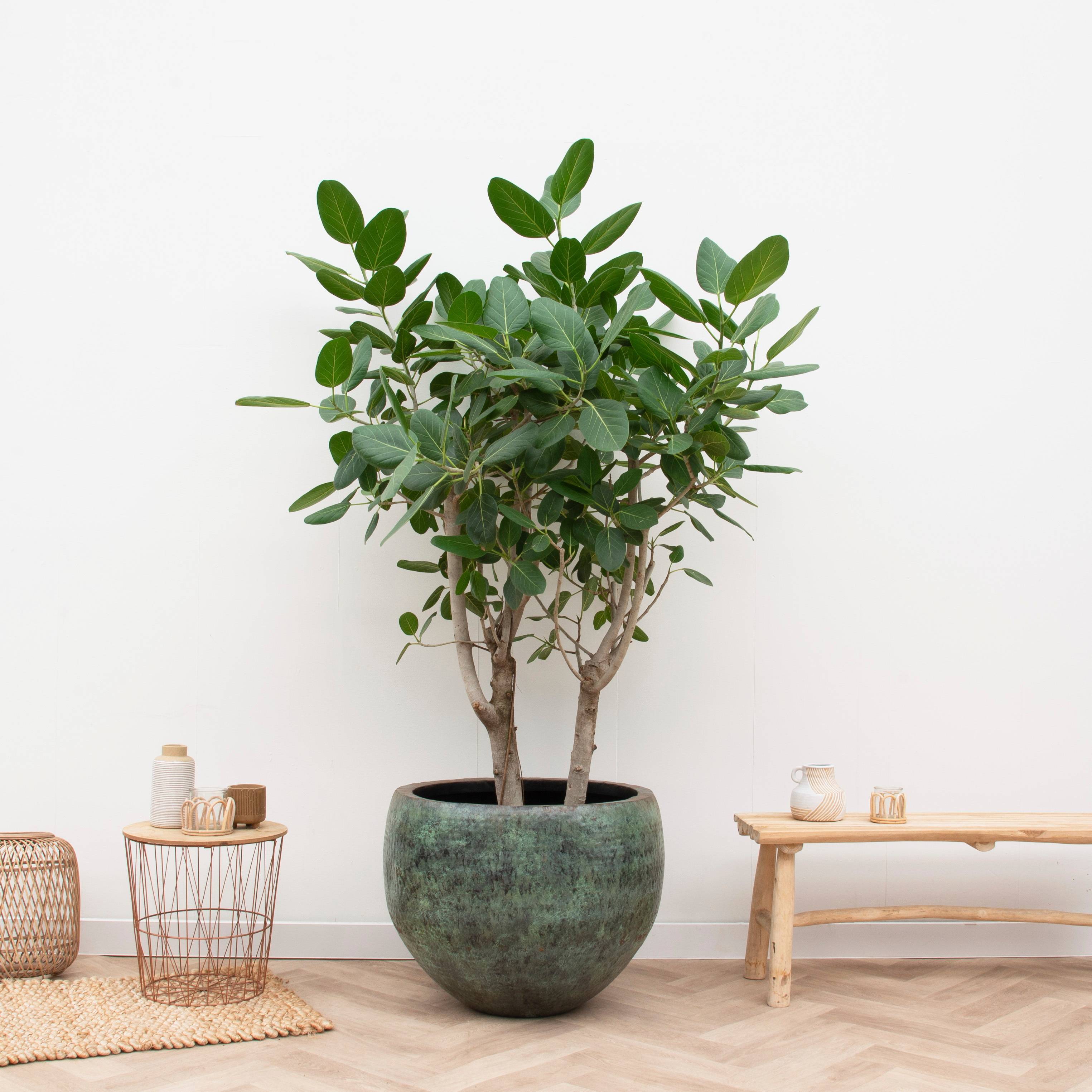 Täyteläisyytensä ansiosta tämä haaroitettu Ficus Benghalensis Audrey on todellinen katseenvangitsija missä tahansa huoneessa. Ficus Benghalensis Audrey tulee trooppiselta ja aurinkoiselta alueelta ja viihtyy valossa kotona tai työpaikalla. Kasvi puhdistaa ilmaa, mutta on hieman myrkyllinen. Neste voi ärsyttää ihoa kasvia karsiessa. Korkeus 220 cm. Ruukun halkaisija 55 cm. Koristeruukku ei sisälly toimitukseen. Tuoksu: ei tuoksua.