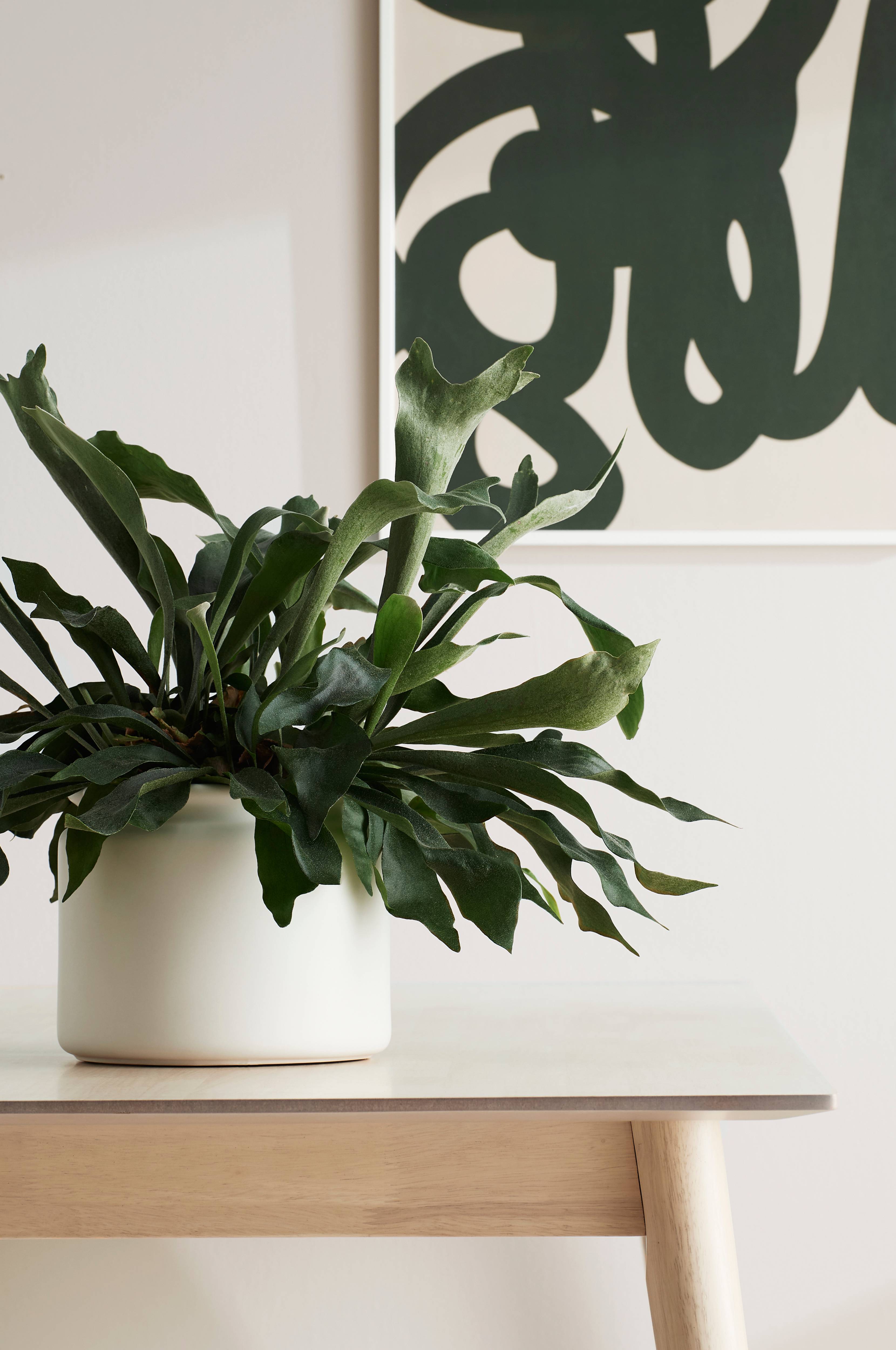 Trendikäs viherkasvi kasvaa luonnonvaraisena sademetsissä, ja sen lehdet muistuttavat hirvensarvia. Viihtyy parhaiten puolivarjossa tai varjossa. Pidä multa tasaisen kosteana. Ruukun ø 17 cm. Tuoksu: Ei tuoksua. Tarjoamme tämän valikoiman yhteistyössä House of Flowersin kanssa. Tuotteet lähetetään ilman välikäsiä suoraan toimittajalta asiakkaalle, jotta ne olisivat mahdollisimman tuoreita.