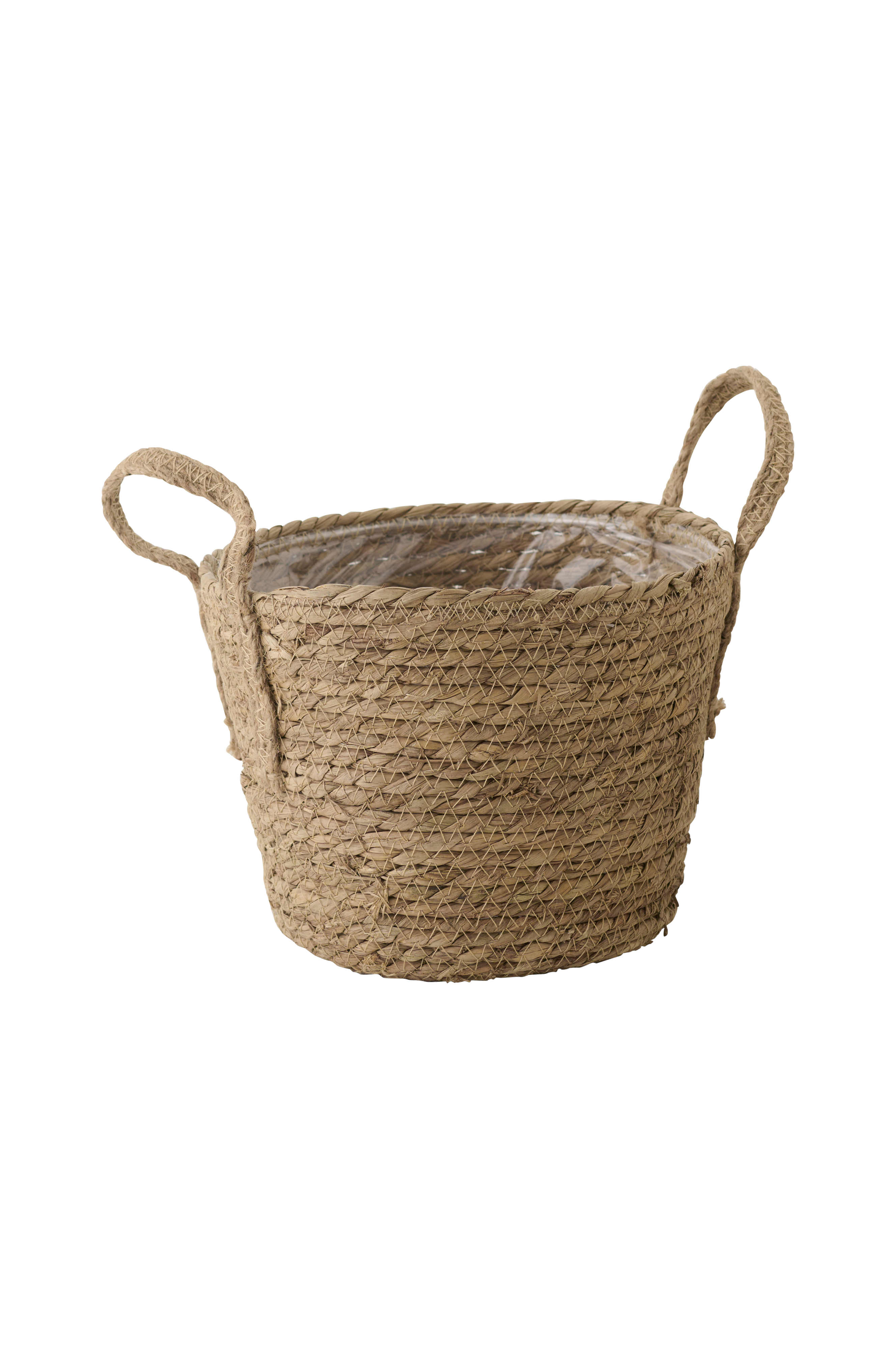 Punottu bambukori, jossa kahvat. Korin korkeus on 20 cm ja halkaisija 25 cm.