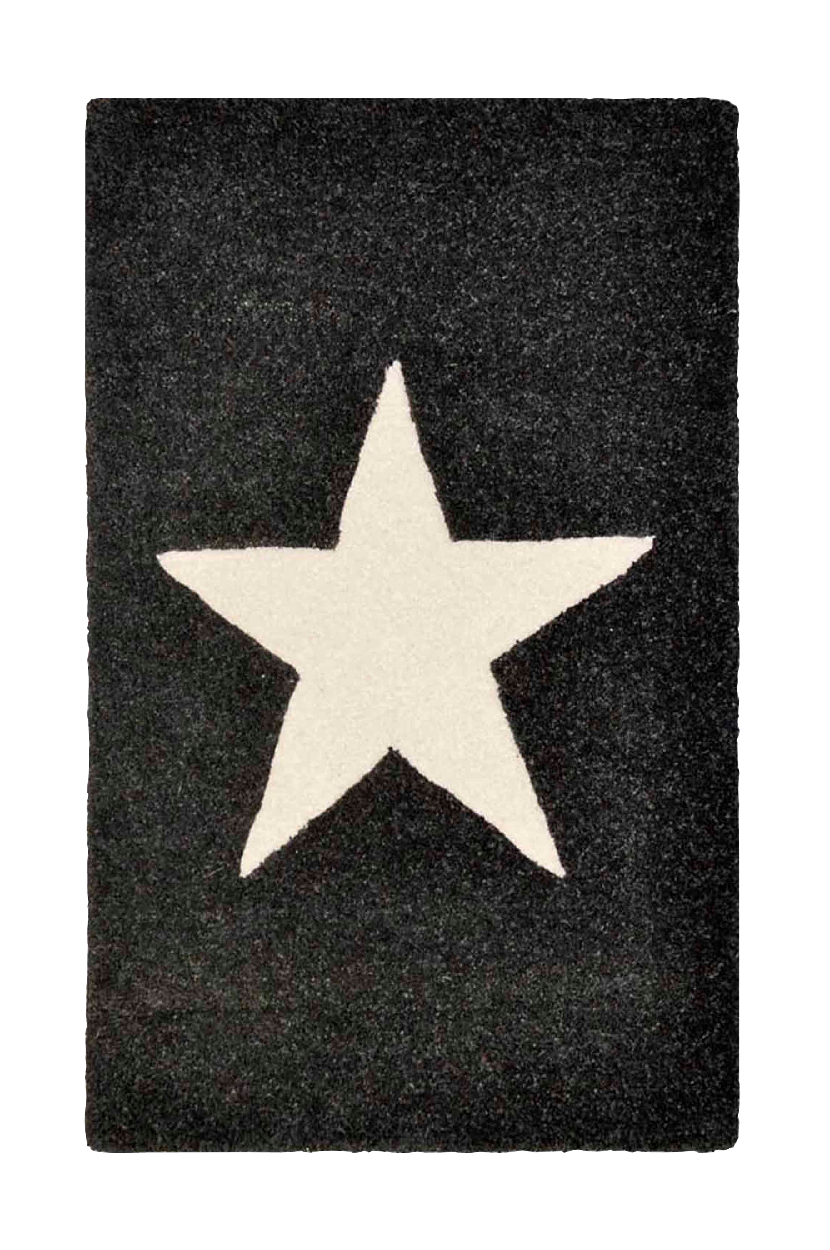 Ovimatto käsintuftattua villaa. Tiivis nukka. Matto koristaa valkoinen tähti. Takaosa kangasta, helppo imuroida. Villa on sekä kaunis että luonnostaan likaa hylkivä luonnonmateriaali.