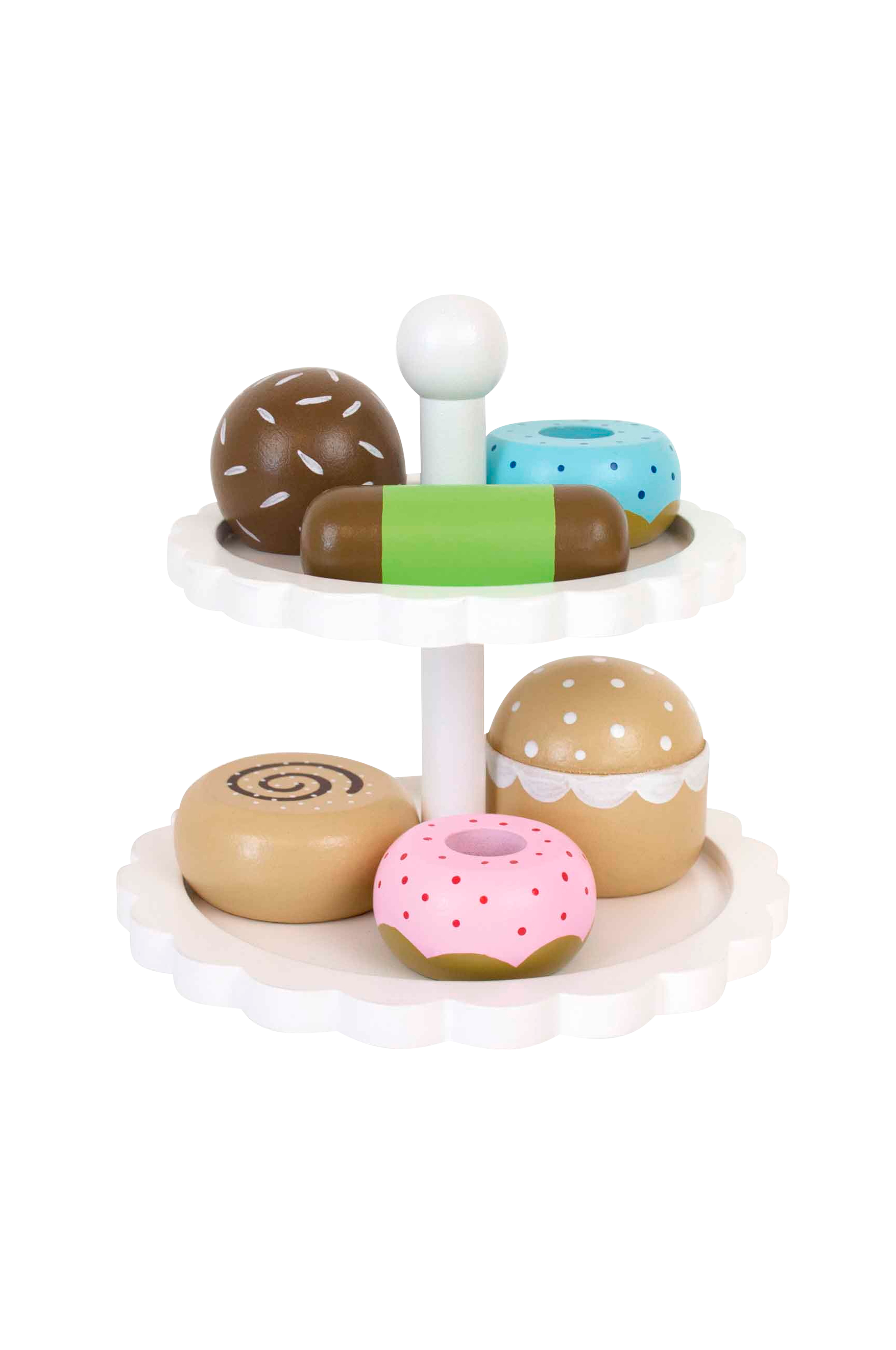 Kaksikerroksinen leivosvati, jossa leikkiruokana 6 leivonnaista. Kutsu ystävät ja perheenjäsenet kahville! Pikku keittiön taattu menestys!