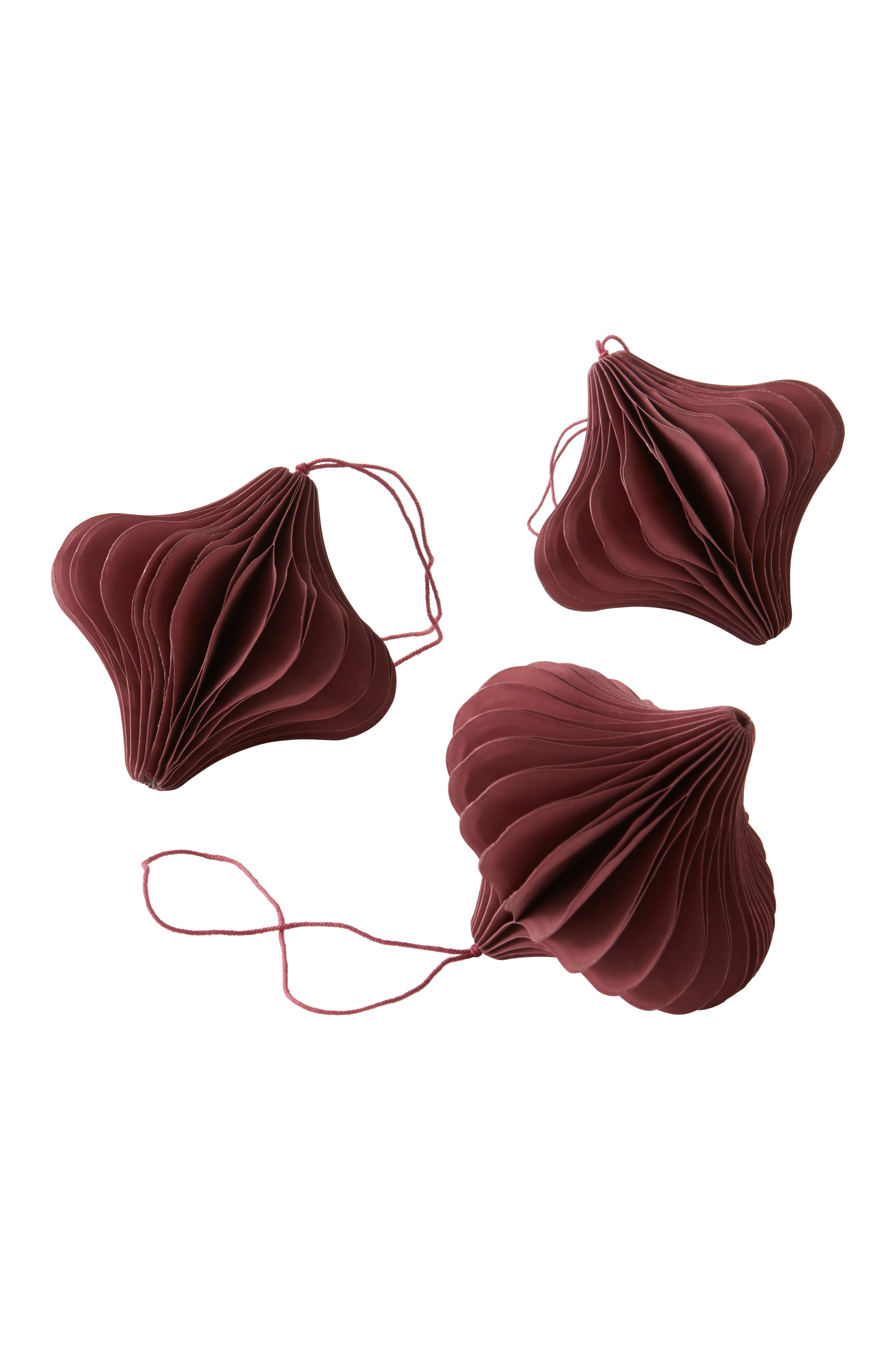 Paperikoristeet, 3/pakkaus. Koristeissa on ylhäällä lenkki, josta ne voi ripustaa ikkunaan, joulukuuseen tai mihin vain. Koristeet toimitetaan paperirasiassa.