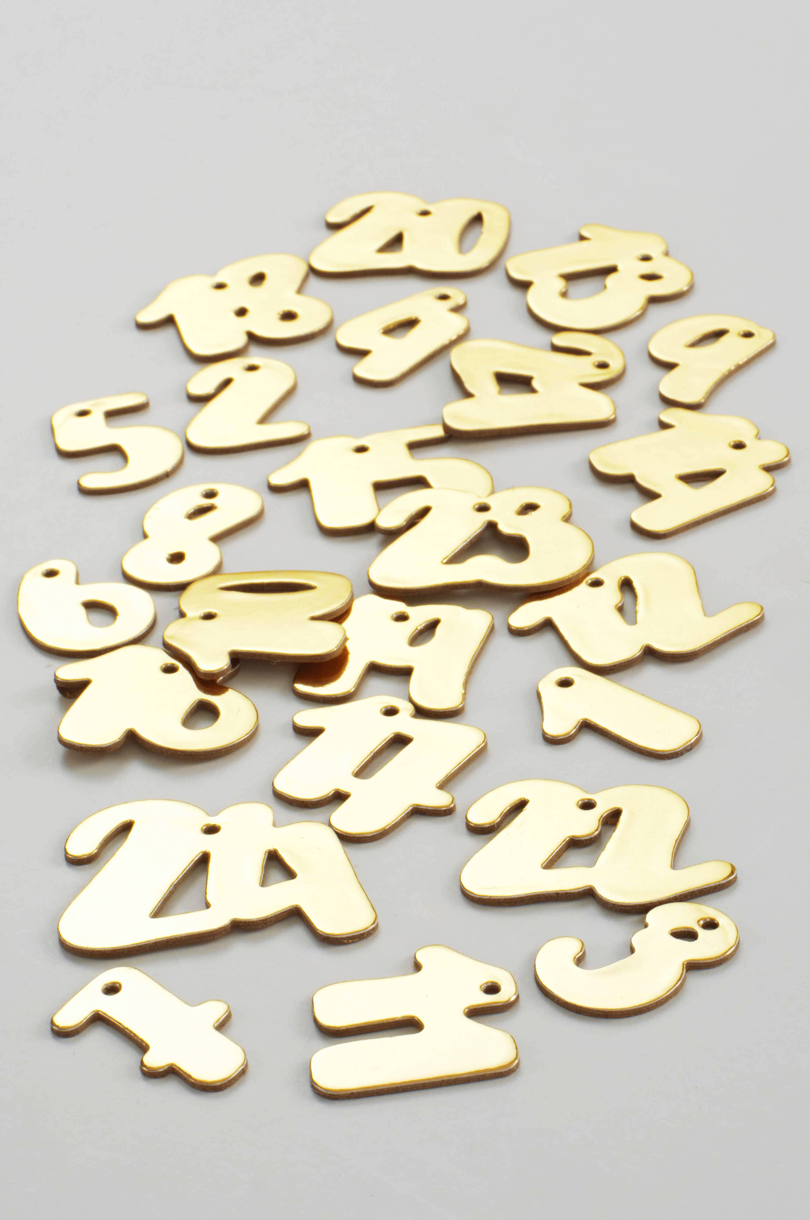 Numerolaput 1-24 oman adventtikalenterin tekemistä varten. Jokaisessa numerossa on reiät, jotka voidaan ripustaa naruun. Naru ei sisälly.