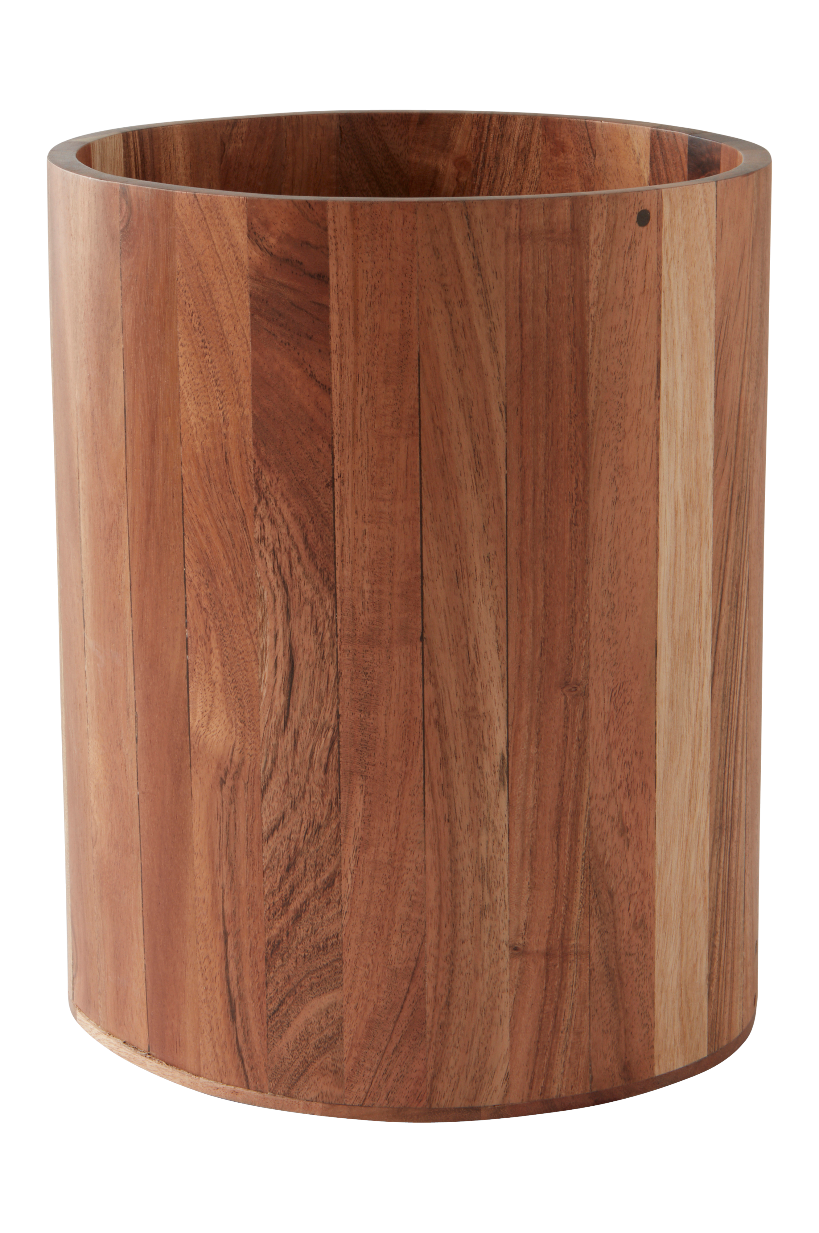 Pyöreä akasiapuinen roskakori. Akasia on hieno viljelty puulaji, jossa on kauniit puunsyyt ja tyylikäs tummahko puunväri. AKIKO-kylpyhuonesarjassa on useita osia, jotka tekevät kylpyhuoneesta kodikkaan ja tyylikkään.