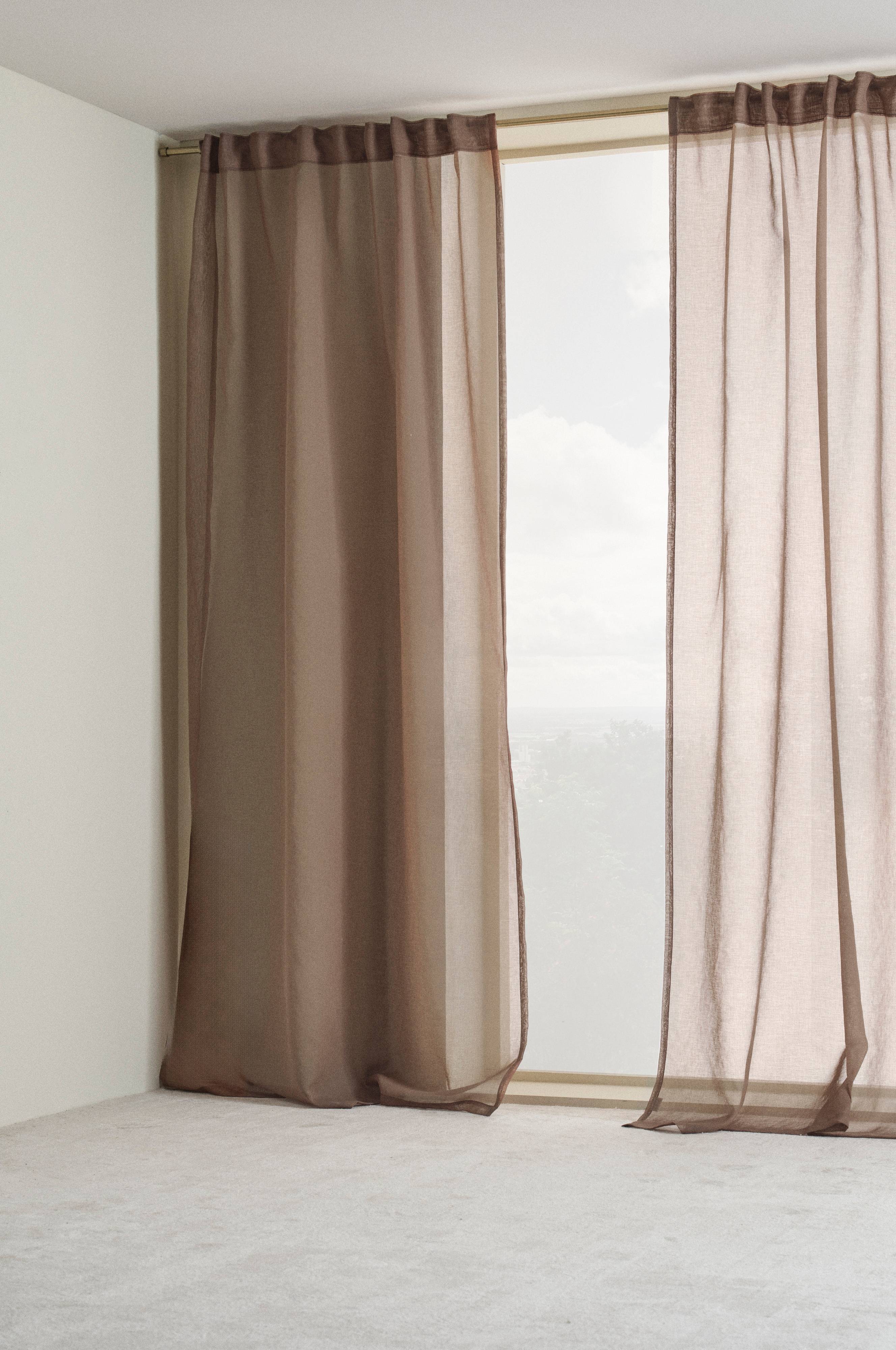 Kaksi verhopituutta herkkää ja ilmavaa voile-polyesteria, joka laskeutuu helposti ja antaa paljon valoa. Jos haluat vetää verhot ikkunaan saadaksesi hieman yksityisyyttä, saat silti ihanaa valoa. Jos ne roikkuvat ikkunan sivussa, se ei vie niin paljon tilaa, mutta se koetaan siistimmäksi. Verhon materiaali on kierrätettyä.