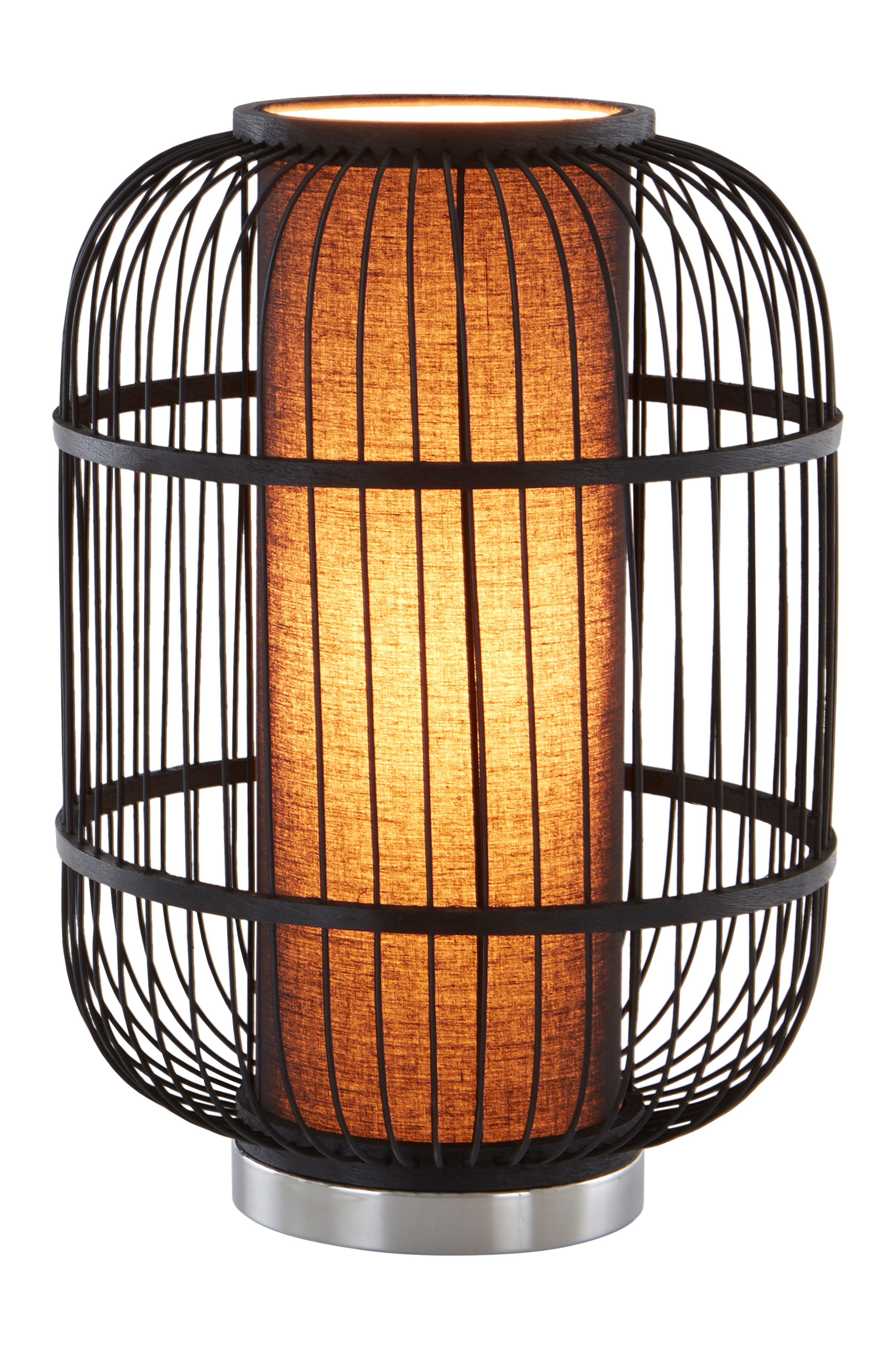 Pöytävalaisin, jonka sisempi varjostin kangasta ja ulompi bambua. ALBERTA on uusi versio rustiikkisista bambuvalaisimista. Se on boheemeja malleja sirompi ja pelkistetympi. Läpikuultava johto, jossa virtakatkaisin. Johdon pituus 2,5 m.