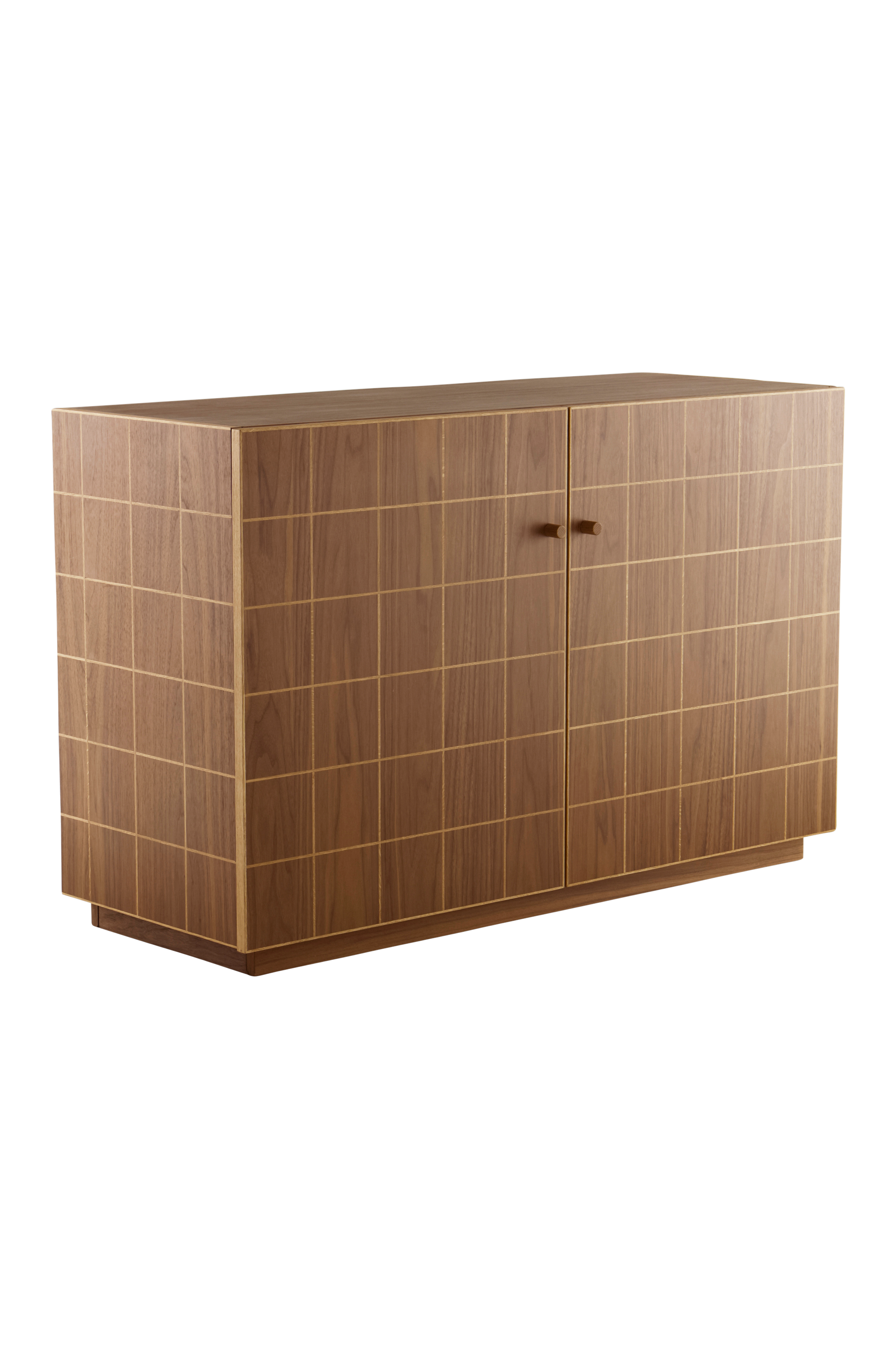 ÄNGÖ-sivupöytä on modernin näköinen, ja sen tyylikäs muotoilu on valmistettu MDF-levystä, jossa on lämmin pähkinäpuu-viilu. Sen tilavat kaapit ja erottuva neliönmuotoinen ovikuvio lisäävät hienostuneisuutta ja yhdistävät vaivattomasti muodon ja toiminnallisuuden tyylikkääksi sisustusesineeksi.