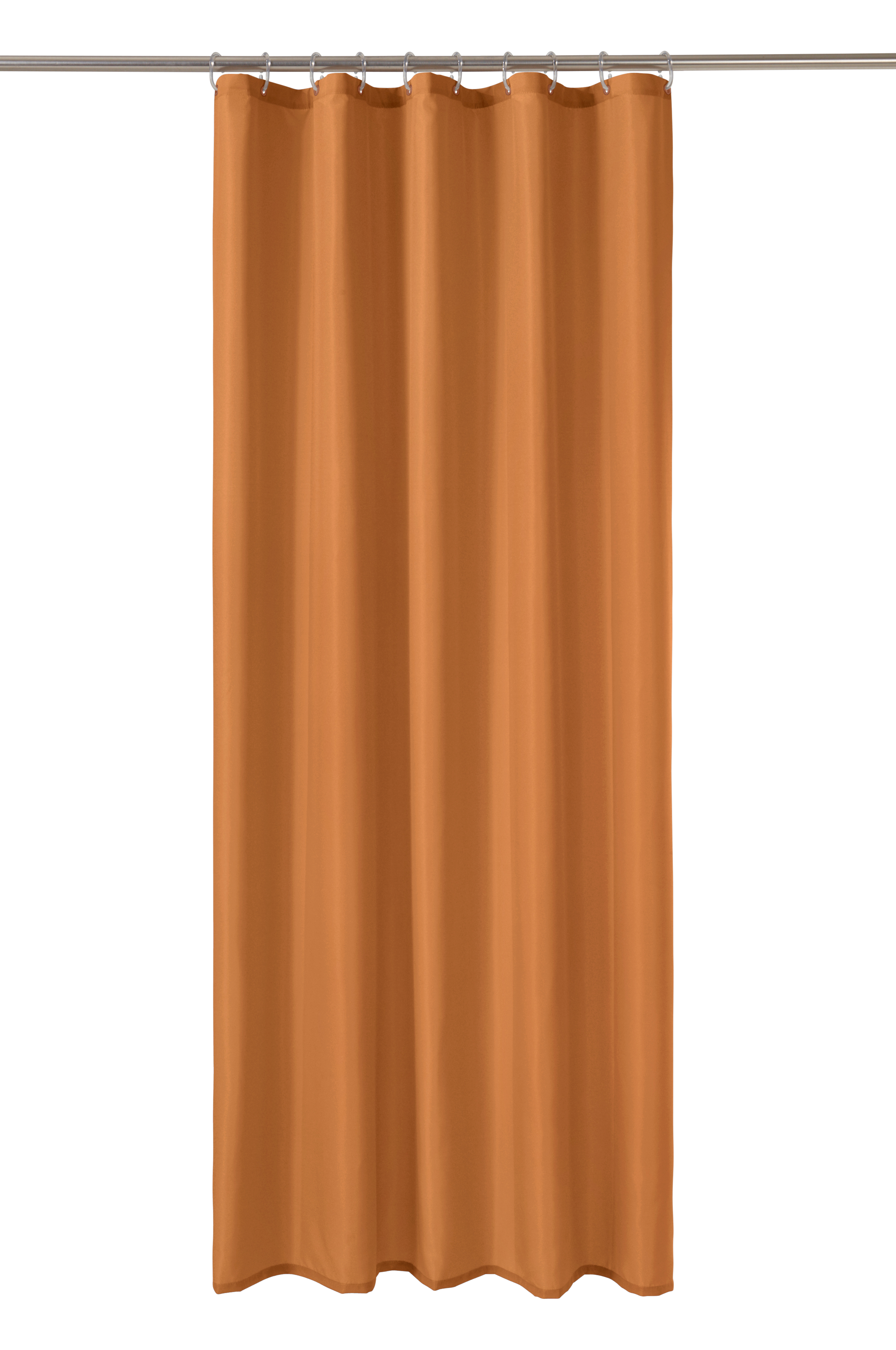 Yksivärinen suihkuverho, jossa ylhäällä kymmenen sointuvan sävyistä mattapintaista rengasta. Polyesteristä valmistetusta suihkuverhosta on saatavana monta raikasta väriä. Kankaassa on vettä hylkivä pinnoite.