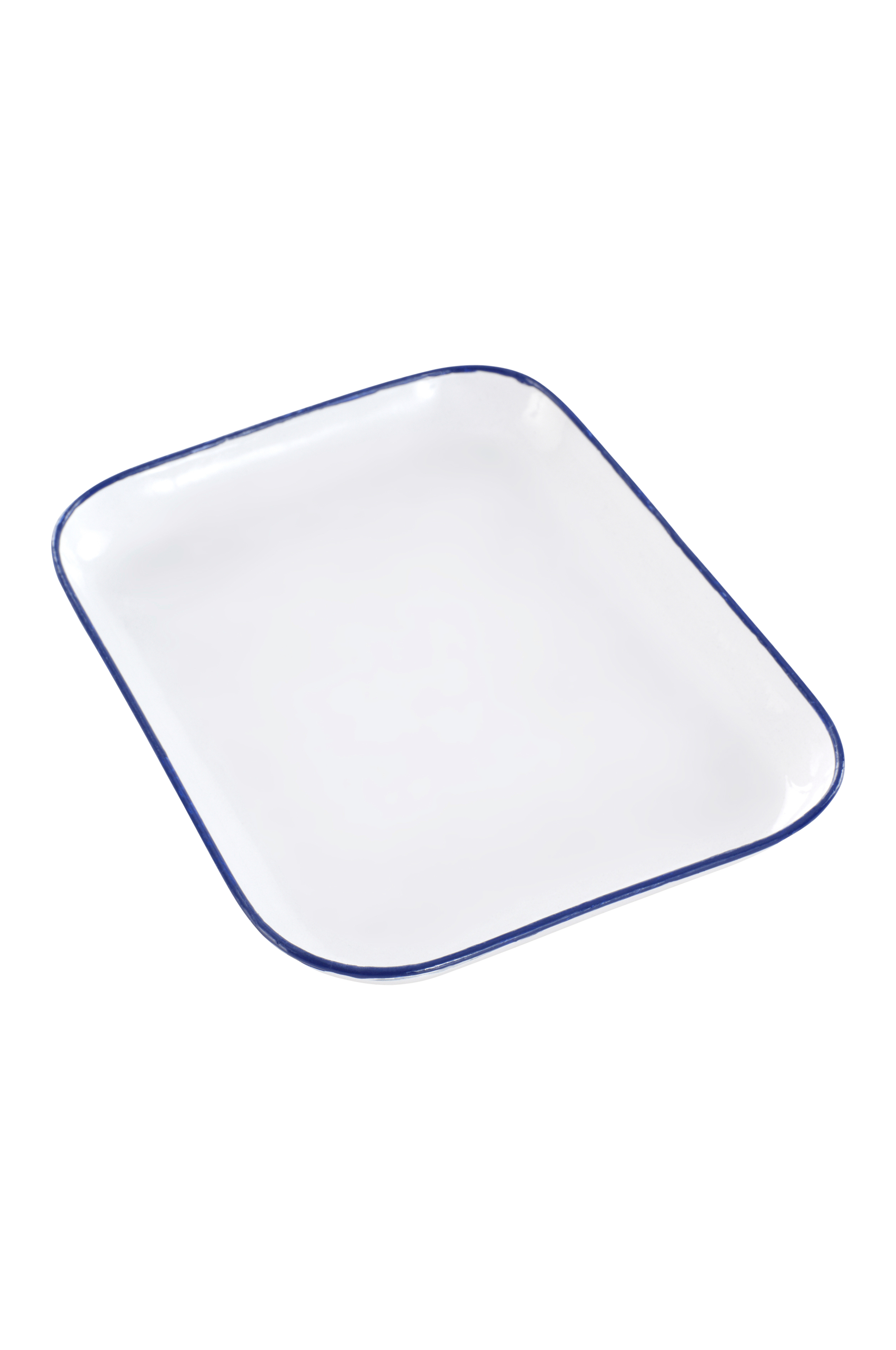 Ruostumattomasta teräksestä valmistetussa ANNIE-tarjottimessa on valkoinen pinta, jossa on sininen reuna, ja se sopii täydellisesti hygieniatuotteiden järjestämiseen tai koristeiden esillepanoon. Sen moderni muotoilu lisää viehätystä mihin tahansa kylpyhuoneeseen.