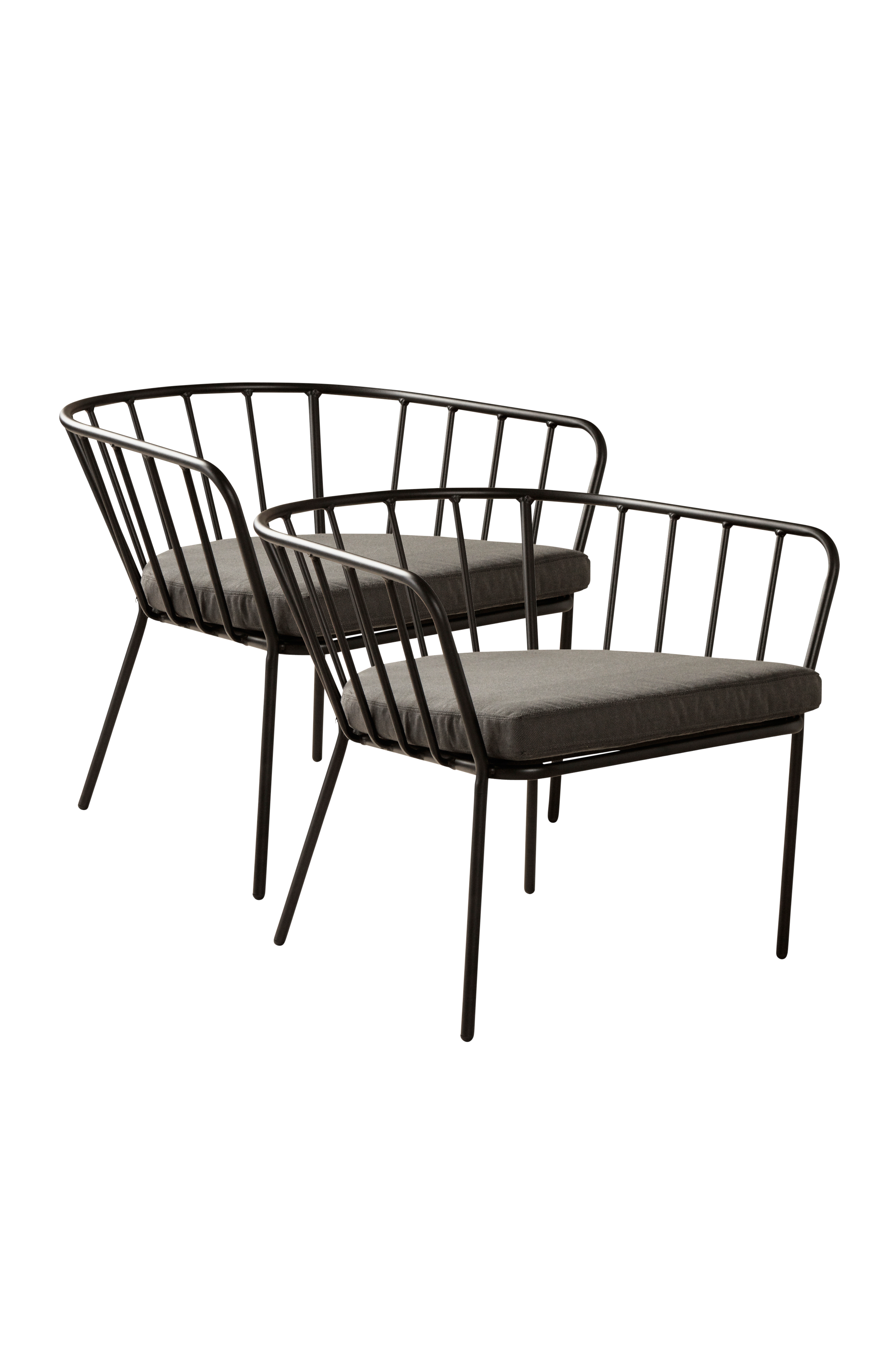 2 lounge-tuolia jauhemaalattua, mattapintaista alumiinia. Kesällä syödään usein ulkona, ja sen tulee onnistua helposti. ANTIBES on kätevä ulkokaluste, joka kestää tuulta ja sadetta. Sinun ei tarvitse siirrellä kalustetta sisälle ja ulos. Tuoleissa on mattapintainen väri, joka ei heijasta auringonvaloa häikäisevästi. Istuintyyny mukana.