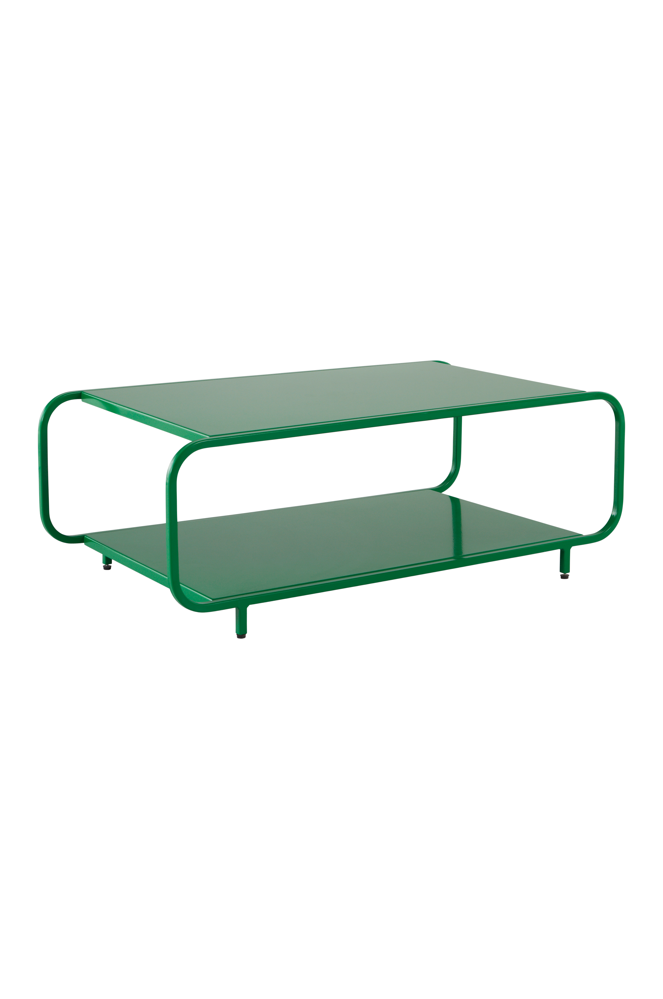 Suorakaiteenmuotoinen sohvapöytä jauhemaalattua rautaa. Pöydässä on näyttävä muotoilu ja pyöreälinjainen rautaputkirunko, joka on päädyissä pöytää pidempi. Alahylly tarjoaa reilusti tilaa esimerkiksi lehdille ja kaukosäätimille. Osittain koottava. Kokoamisohje mukana.