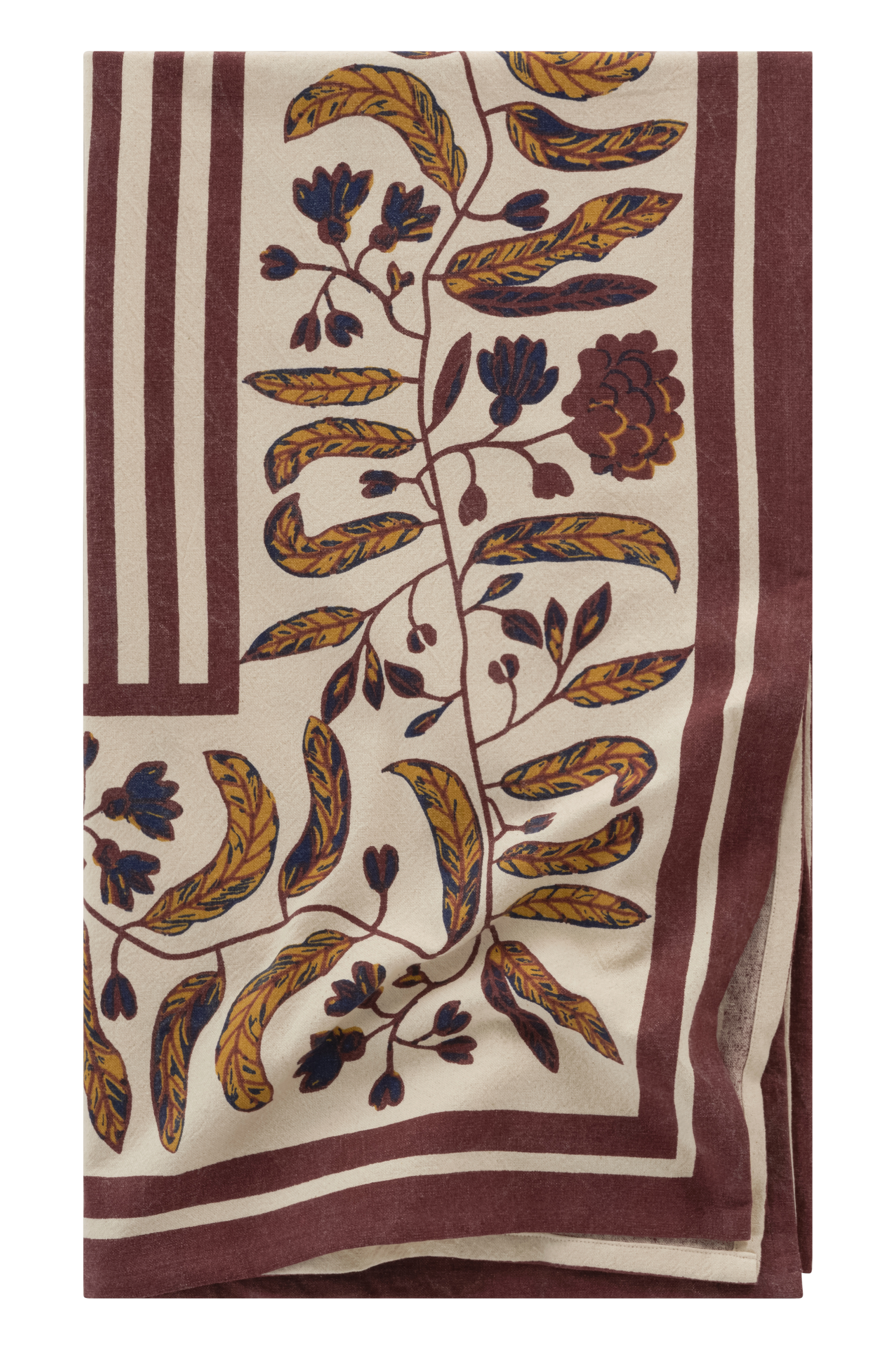 ASTA-pöytäliina vangitsee skandinaavisen syksyn olemuksen tummanpunaisilla sävyillä ja raitojen sekoittamalla kukkakuviolla. Puuvillasta valmistetussa liinassa yhdistyvät kodikas estetiikka ja käytännöllisyys. Korosta sisustustasi ASTAn lämpimällä, ajattomalla charmilla ja yhteensopivilla esineillä.
