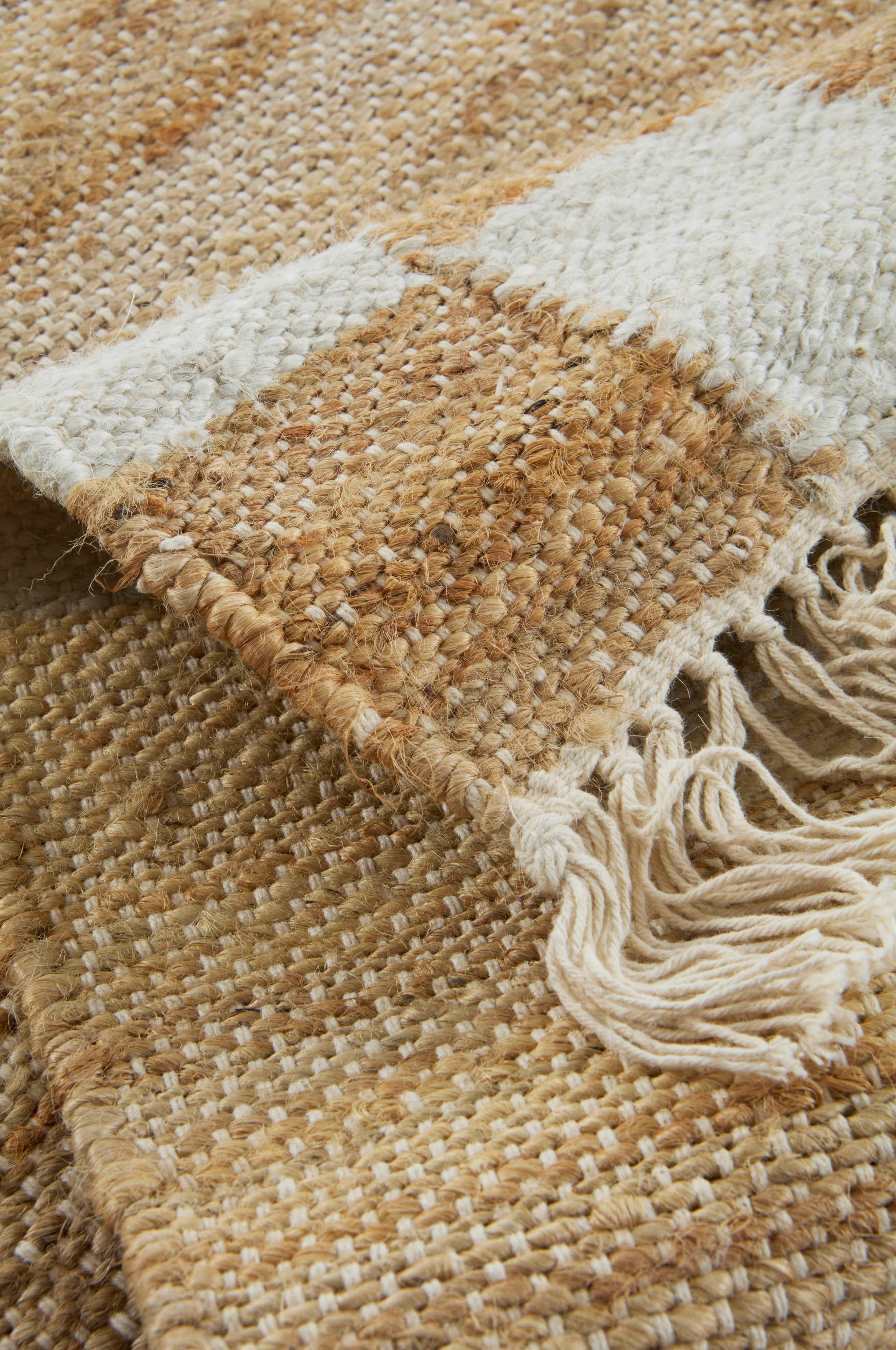 AUREA-matto on hienosti käsin kudottu juutti matto, jossa on leveä ruudullinen reunus ja hapsut. Jokaisen maton väri ja koko voivat vaihdella hieman, mikä lisää ainutlaatuista luonnetta. Tämä viehättävä matto sopii moneen tilaan, kuten olohuoneeseen ja makuuhuoneeseen.