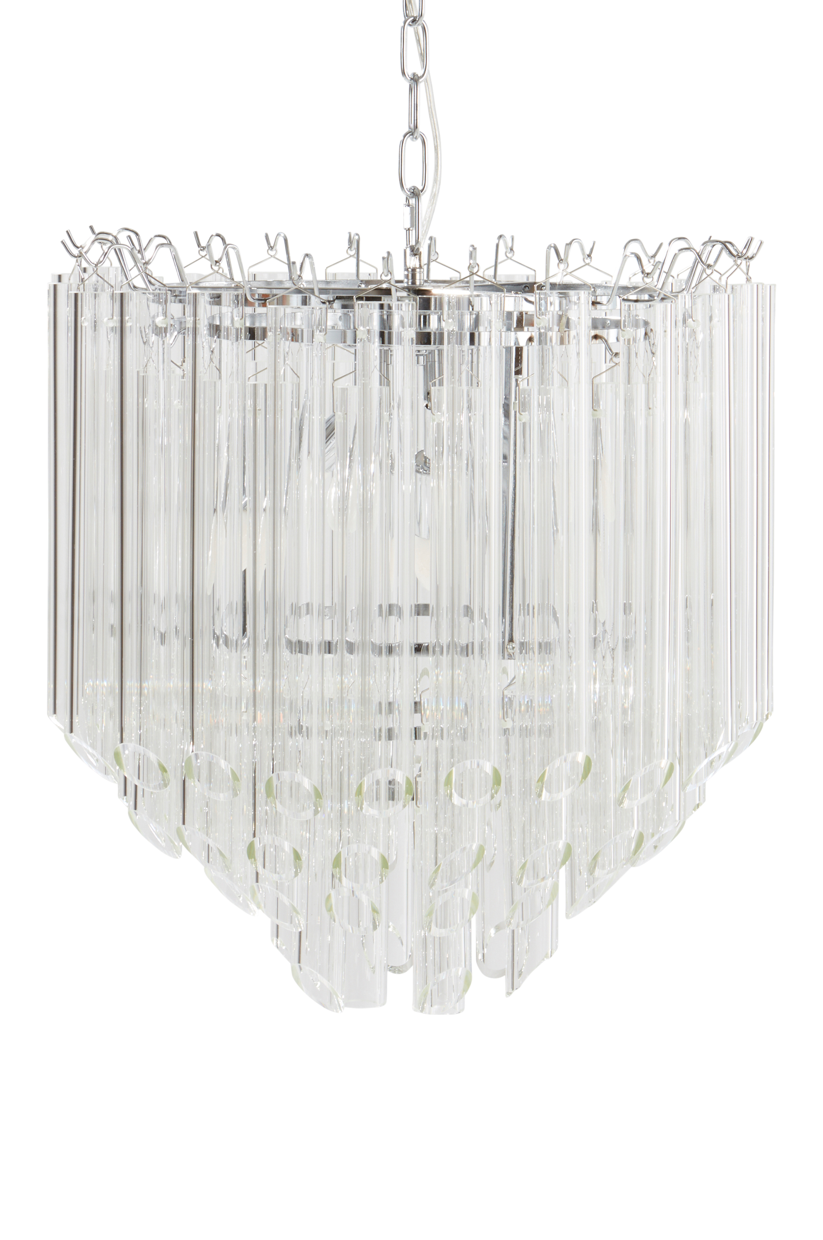 Kattovalaisin, jossa lasitankoja useissa kerroksissa ja runko krominväristä rautaa. Lasiset tangot saavat valaisimen valaisemaan kauniisti. Valaisimessa on ripustusketju, jonka pituutta voidaan säätää.
