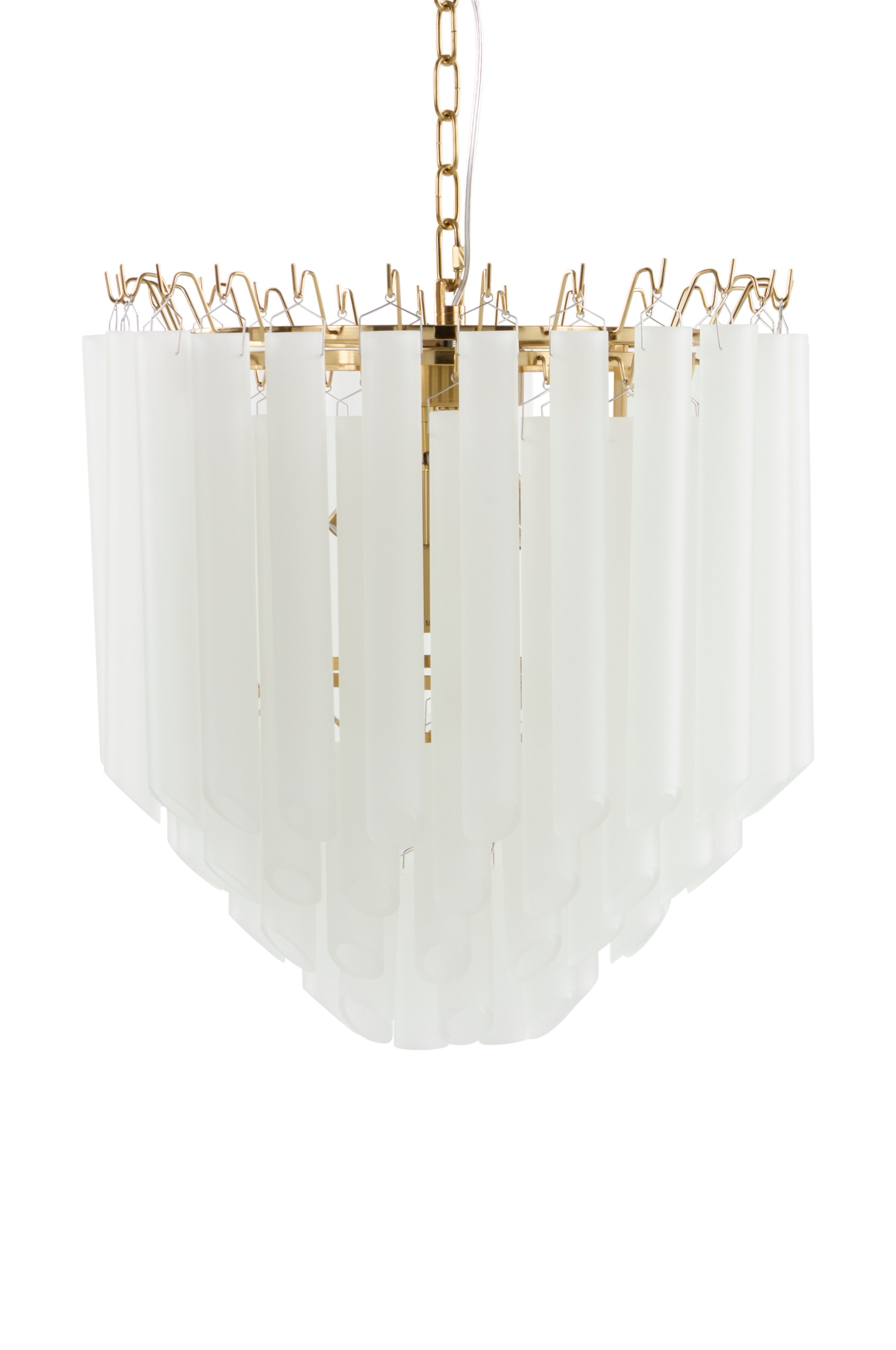 Kattovalaisin, jossa lasitankoja useissa kerroksissa ja runko krominväristä rautaa. Lasiset tangot saavat valaisimen valaisemaan kauniisti. Valaisimessa on ripustusketju, jonka pituutta voidaan säätää.