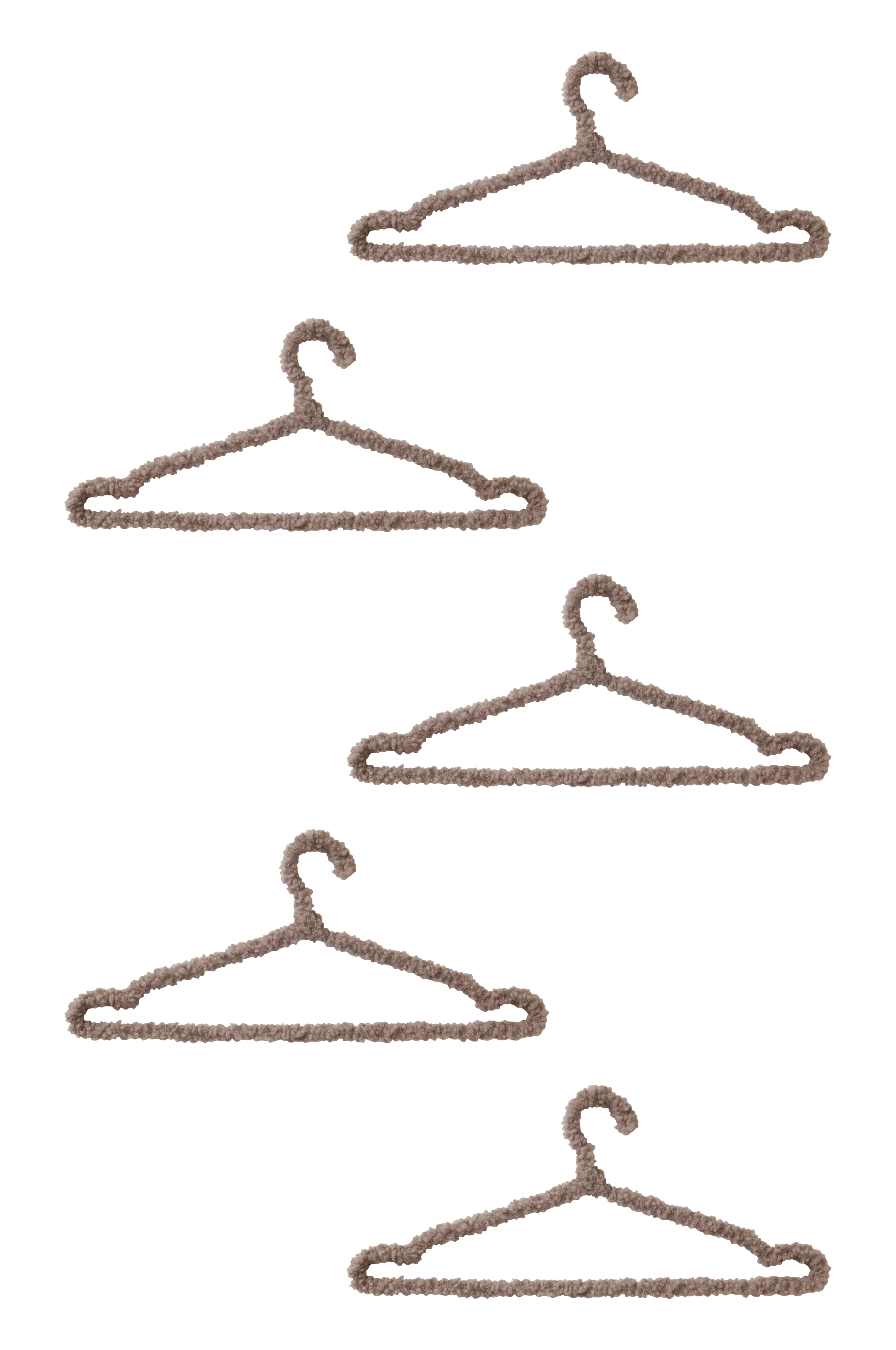 Vaateripustimet ruostumatonta terästä, päällinen pehmeää ja miellyttävää polyesteriteddyä. 5/pakkaus. Ripustimet ovat tyylikkäät naulakossa eteisessä tai vaatetelineessä makuuhuoneessa.