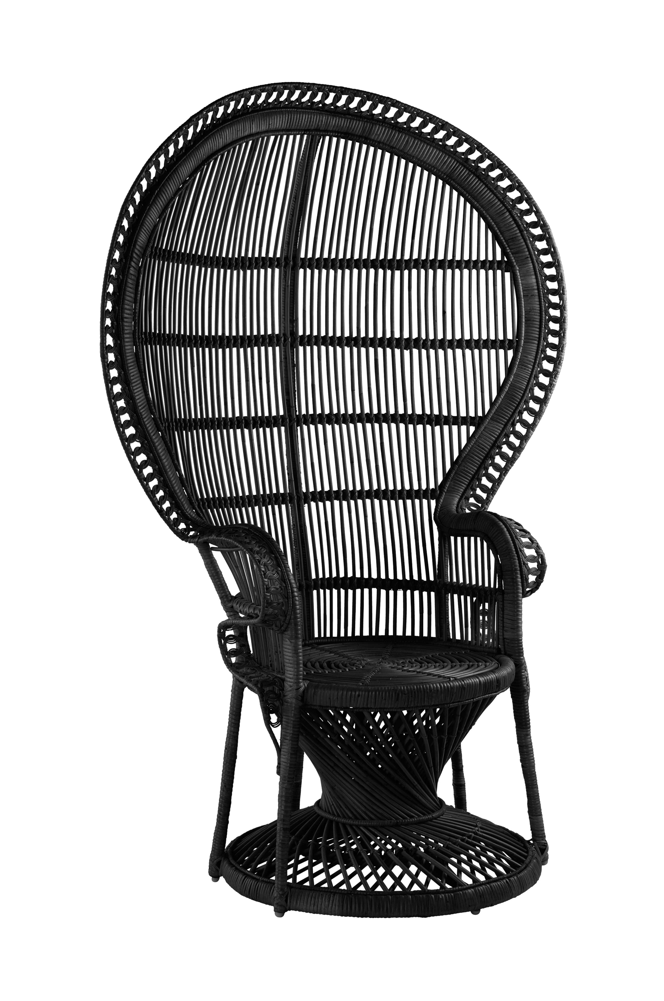 Riikinkukkotuoli rottinkia. Ulkokäytössä huonekalu tulee sijoittaa sateelta ja kosteudelta suojattuun tilaan, kuten kasvihuoneeseen tai katettuun ulkotilaan. Klassinen malli, jossa korkea pyöristetty selkänoja ja tyylikäs selkänojan reuna. Pyöreä istuin. Tuoli on taitavien, rottingin muotoiluun erikoistuneiden käsityöläisten käsin tekemä, mikä tekee jokaisesta tuolista ainutlaatuisen.
