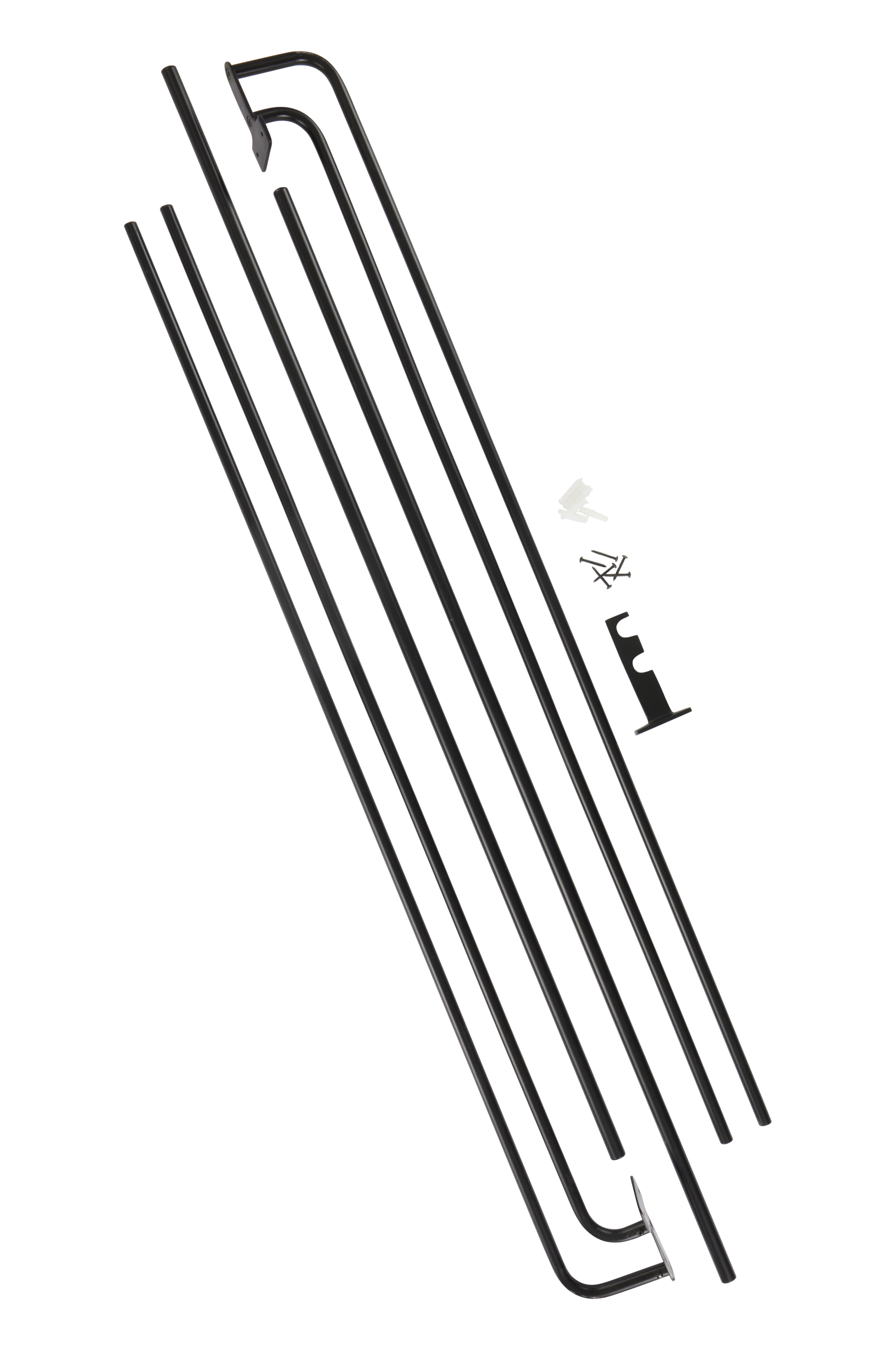 Koko: Säädettävä pituus 277-396 cm. 6 tankoa, joiden halkaisija 16/19 mm. Etäisyys seinästä n. 7 cm ja 12 cm.