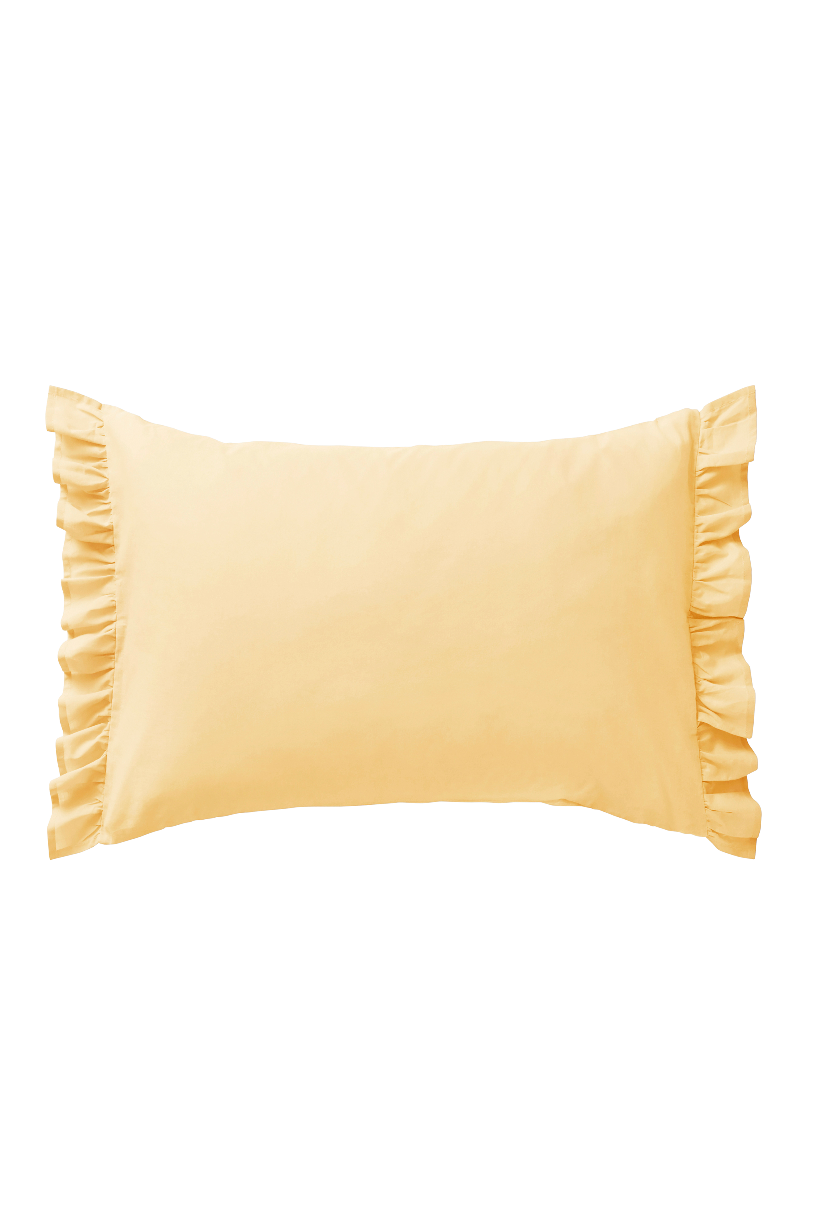 Tyynyliina ekologista puuvillaa. Koristeellinen röyhelöreuna. 1/pakkaus. Puuvilla tuntuu ilmavalta ja pehmeältä ihoa vasten. Langantiheys 144 tc. (Langantiheys kertoo lankojen lukumäärän, thread counts, neliötuuman alalla. Mitä suurempi langantiheys, sitä laadukkaampi materiaali.)