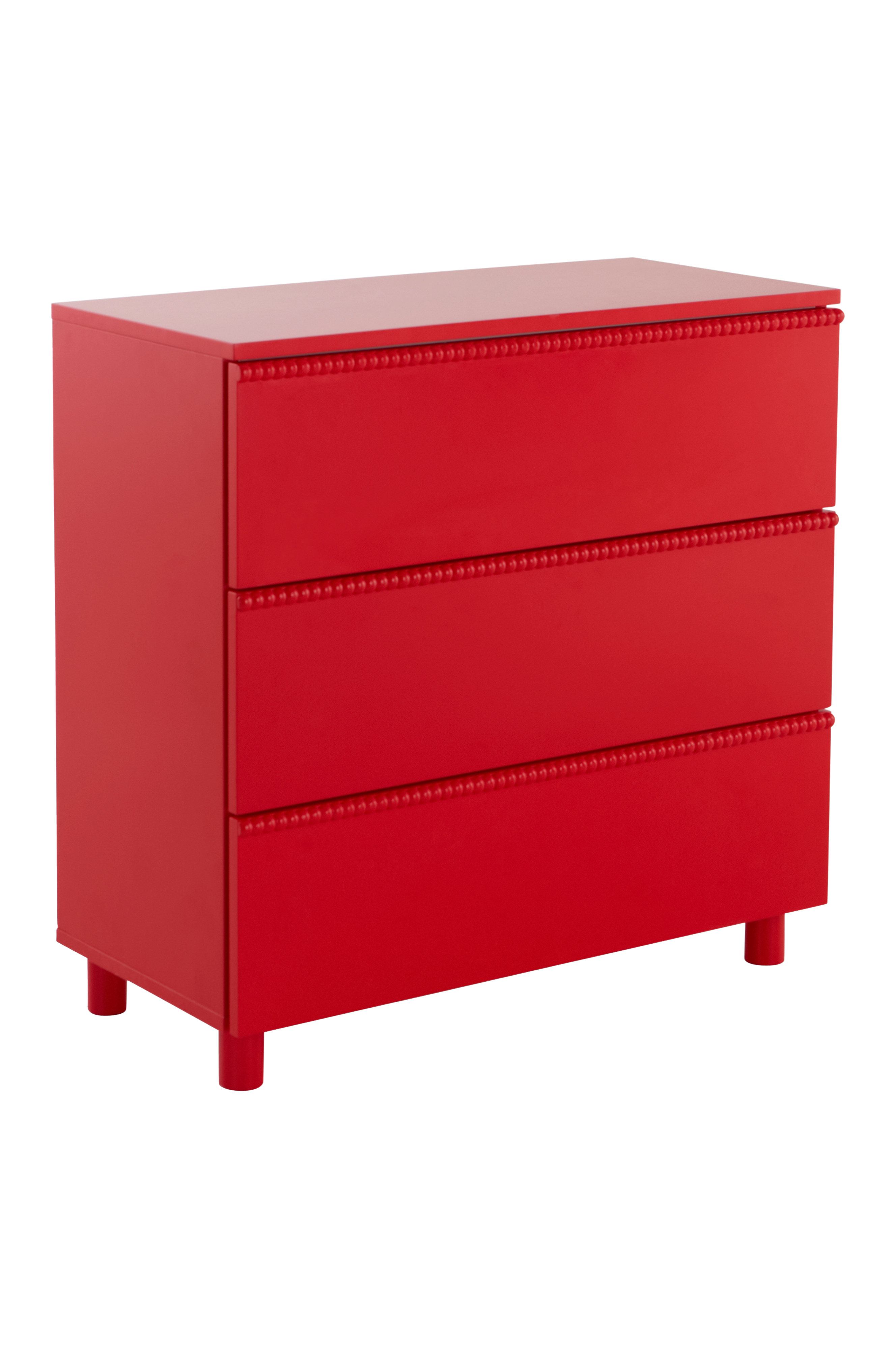Lasten lipasto BOLDON tuo modernia charmia lastenhuoneeseen. Tukevasta MDF-levystä ja mäntyjaloista valmistettu lipasto on toimiva ja tyylikäs. Jokaisessa laatikossa on koristeellinen reuna, joka tarjoaa runsaasti säilytystilaa vaatteille ja leluille ja sopii samalla erilaisiin sisustustyyleihin.