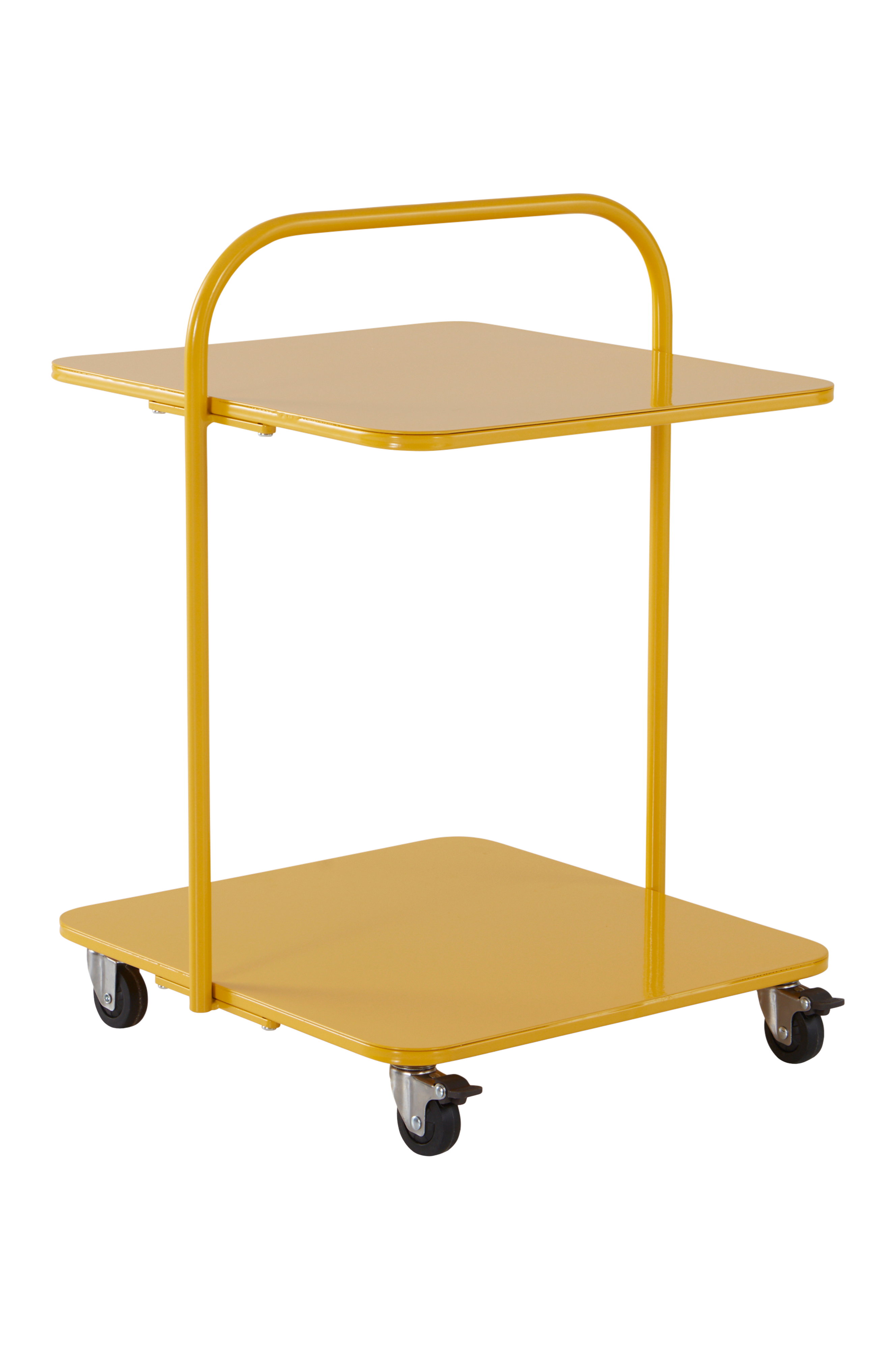 Pyörällinen sivupöytä, jossa laskutaso ja kahva ylhäällä. Käytännöllinen ja monikäyttöinen malli. Rautaisessa sivupöydässä on jauhemaalattu pinta. Neljä pyörää helpottaa siirtämistä, ja kaksi pyörää voidaan lukita pitämään pöytä paikoillaan. CLYDE on monikäyttöinen ja sopii sivupöydäksi sohvan viereen tai vaikka yöpöydäksi tai askartelupöydäksi. Helppo siirtää sivuun, kun sitä ei käytetä. Osittain koottava. Kokoamisohje mukana.