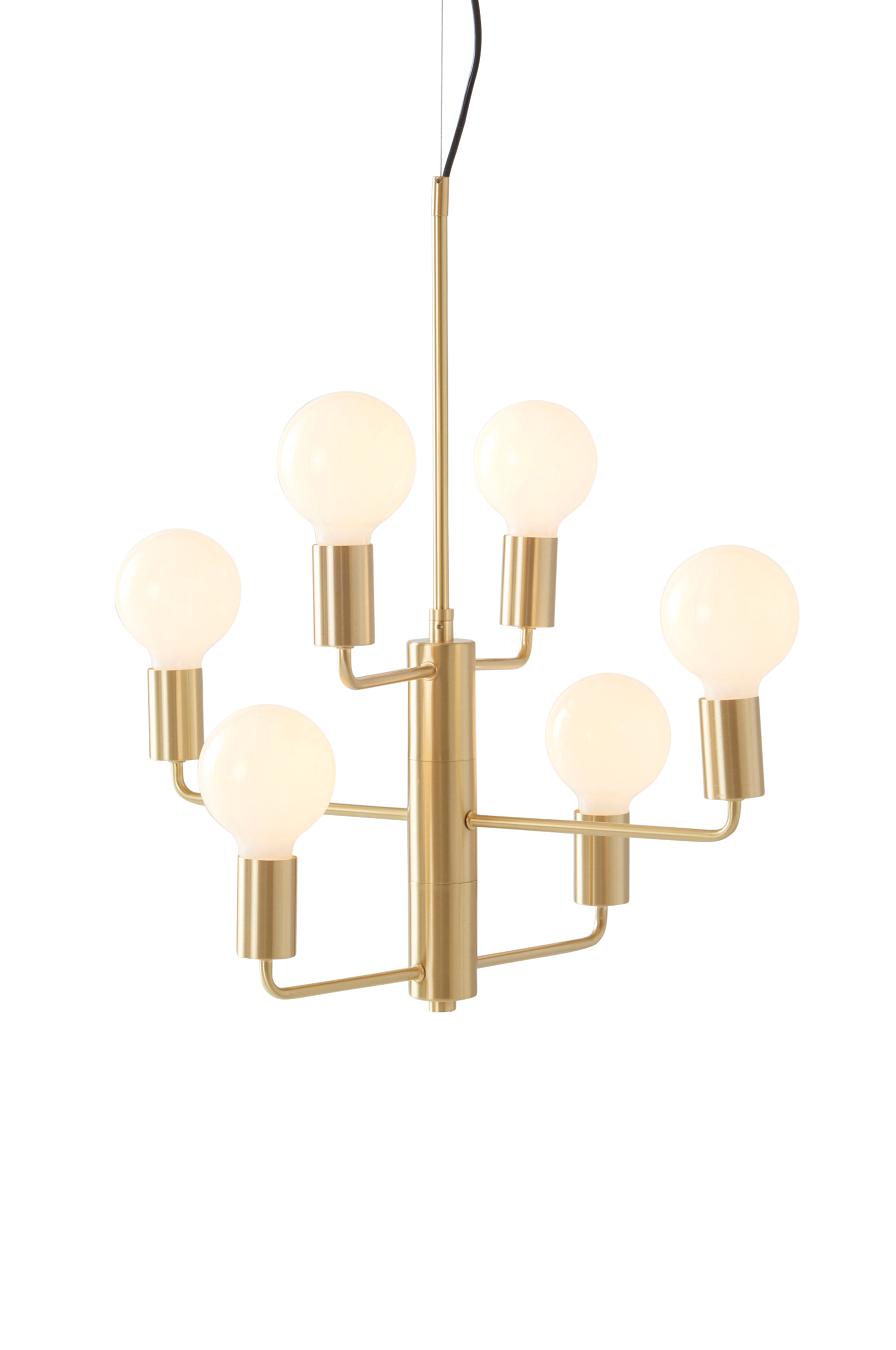 Metallinen kattovalaisin, jossa kuusi valopistettä ja ripustusvaijeri. Moderni ja pelkistetty kattovalaisin. Valaisimessa on kuusi haaraa, joiden valonlähteet antavat kauniin valon huoneeseen. Johdon pituus 70 cm. Valonlähteet eivät sisälly toimitukseen. Kattopistoke ei sisälly toimitukseen uusien EU-sääntöjen vuoksi. Se on ostettavissa erikseen ja on nimeltään ROOF EARTH -kattopistoke.