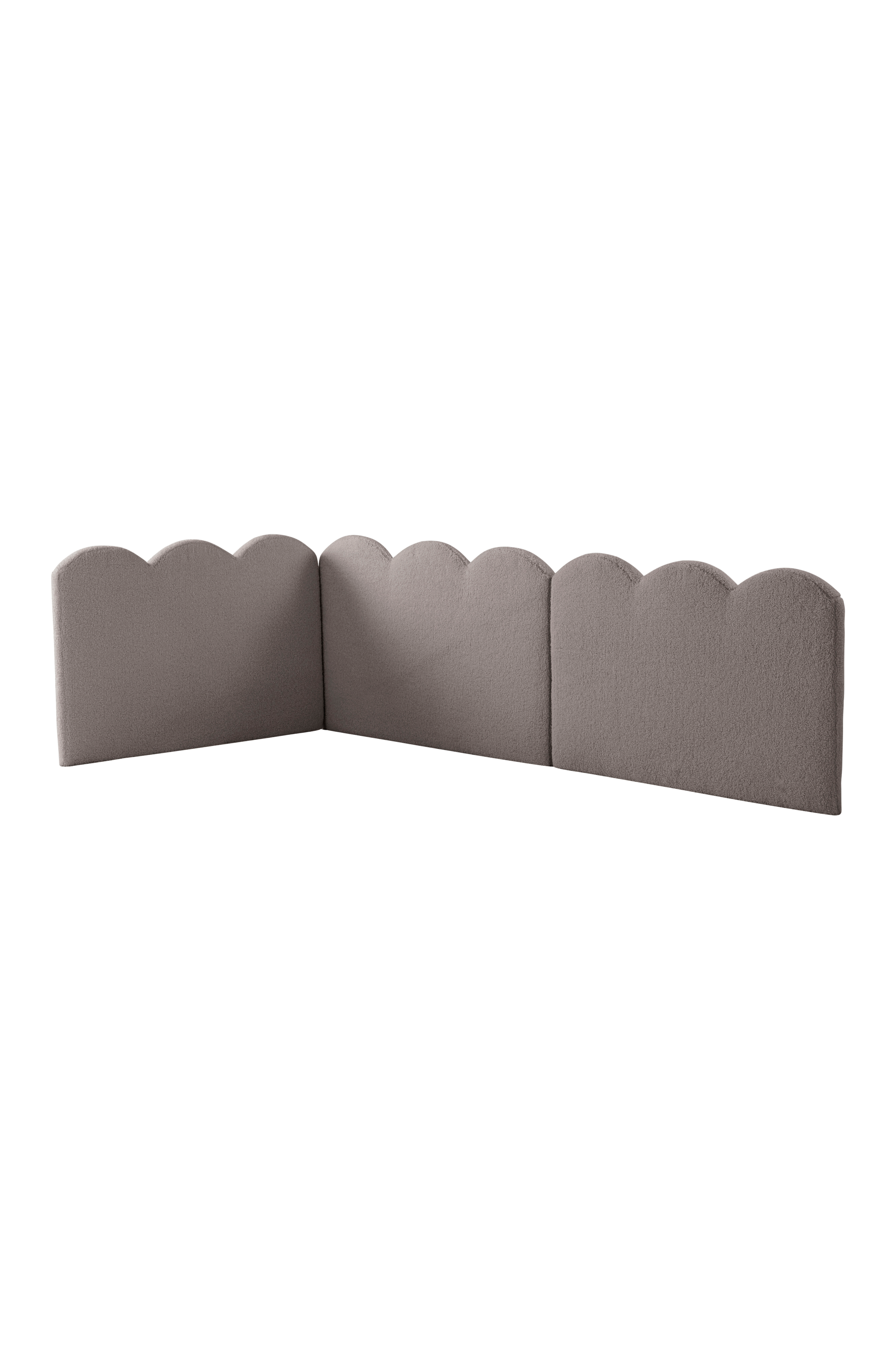 Kolmeosainen sängynpääty, jonka avulla luot viihtyisän sänkynurkkauksen. Sijoita yksi osa sängynpäädystä sängyn pääpuoleen ja kaksi osaa seinää vasten, niin saat kauniin kehyksen sängylle. Kangas on miellyttävää teddyä, jonka Martindale-arvo on 20 000. Sängynpäädyssä on leikkisä muoto ja pehmeä toppaus. Taustapuolen seinäkiinnikkeiden ansiosta sängynpääty on helppo asentaa sängyn ja seinän väliin. FSC-merkitystä männystä ja vanerista valmistettua runkoa täydentää pehmeä vaahtomuovi- ja polyesterivanutäyte. Päällistä ei voi irrottaa. Seinäkiinnikkeet mukana. Osittain koottava. Kokoamisohje mukana.