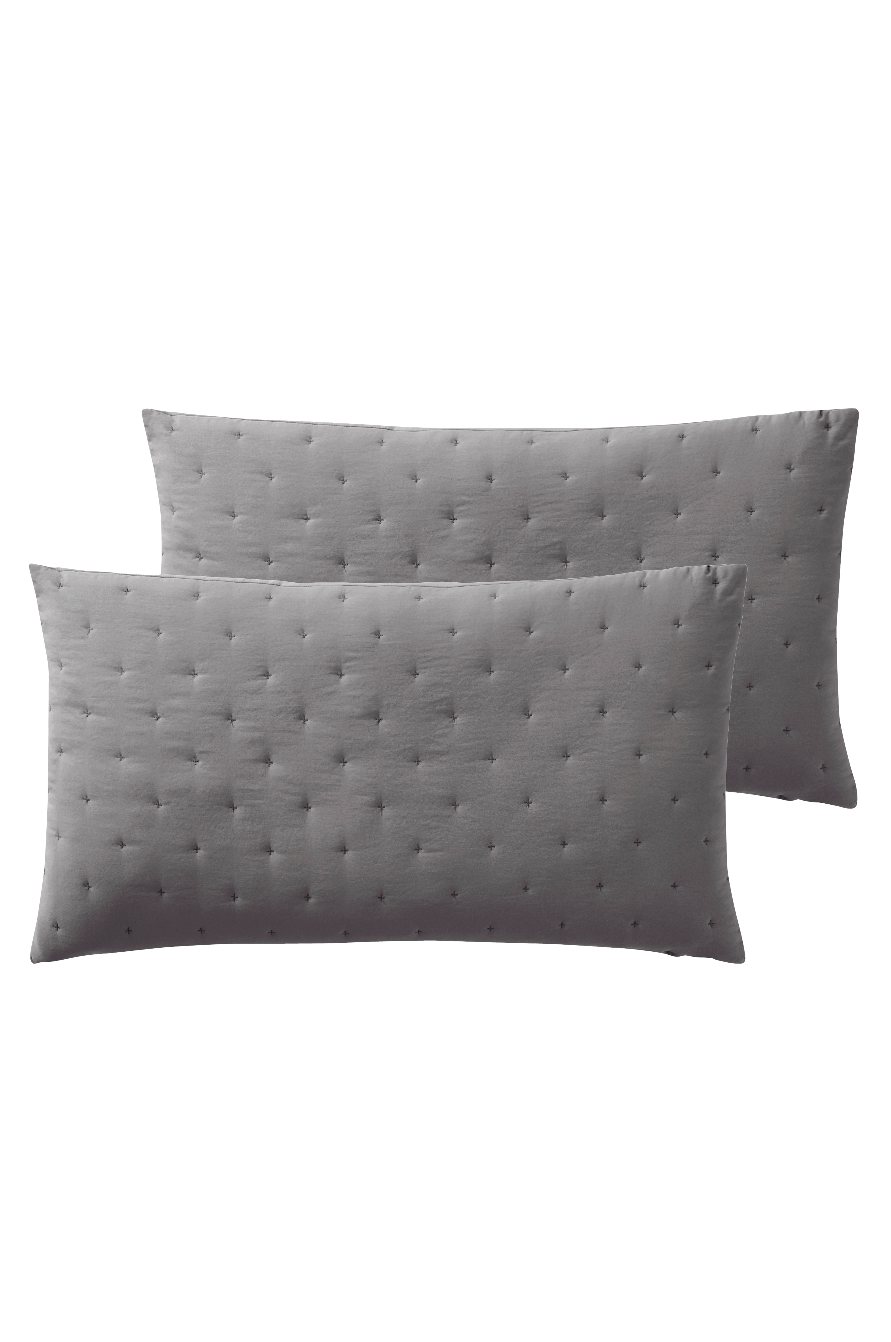 Tyynynpäälliset pehmeää, miellyttävän tuntuiseksi pestyä polyesteriä. 2/pakk. Pienet kirjaillut ristit muodostavat hillityn tikatun kuvion etupuolelle. Tikkaus pitää kankaan kevyen toppauksen paikallaan. Sileä taustapuoli. Piilovetoketju takana.