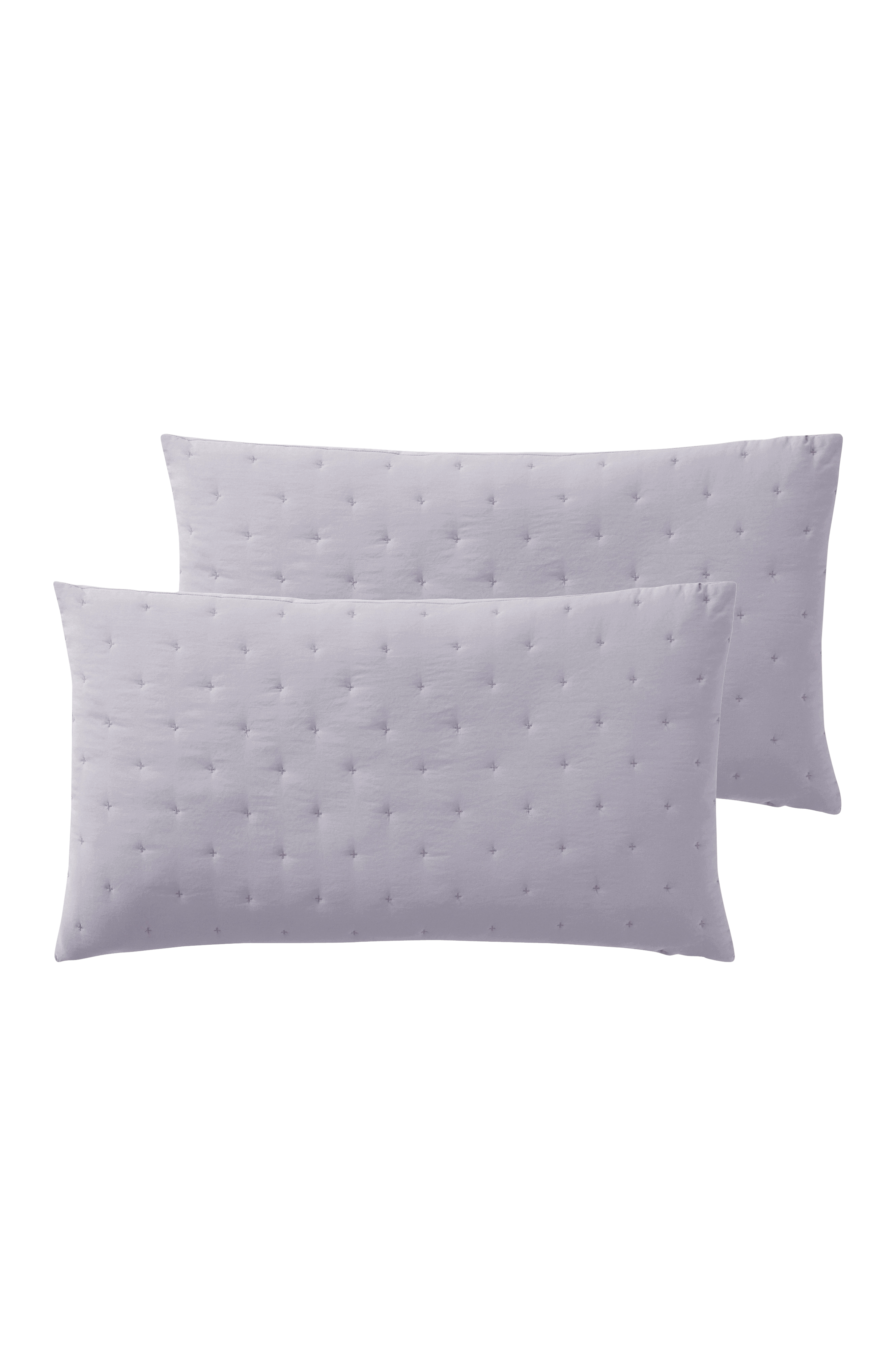Tyynynpäälliset pehmeää, miellyttävän tuntuiseksi pestyä polyesteriä. 2/pakk. Pienet kirjaillut ristit muodostavat hillityn tikatun kuvion etupuolelle. Tikkaus pitää kankaan kevyen toppauksen paikallaan. Sileä taustapuoli. Piilovetoketju takana.
