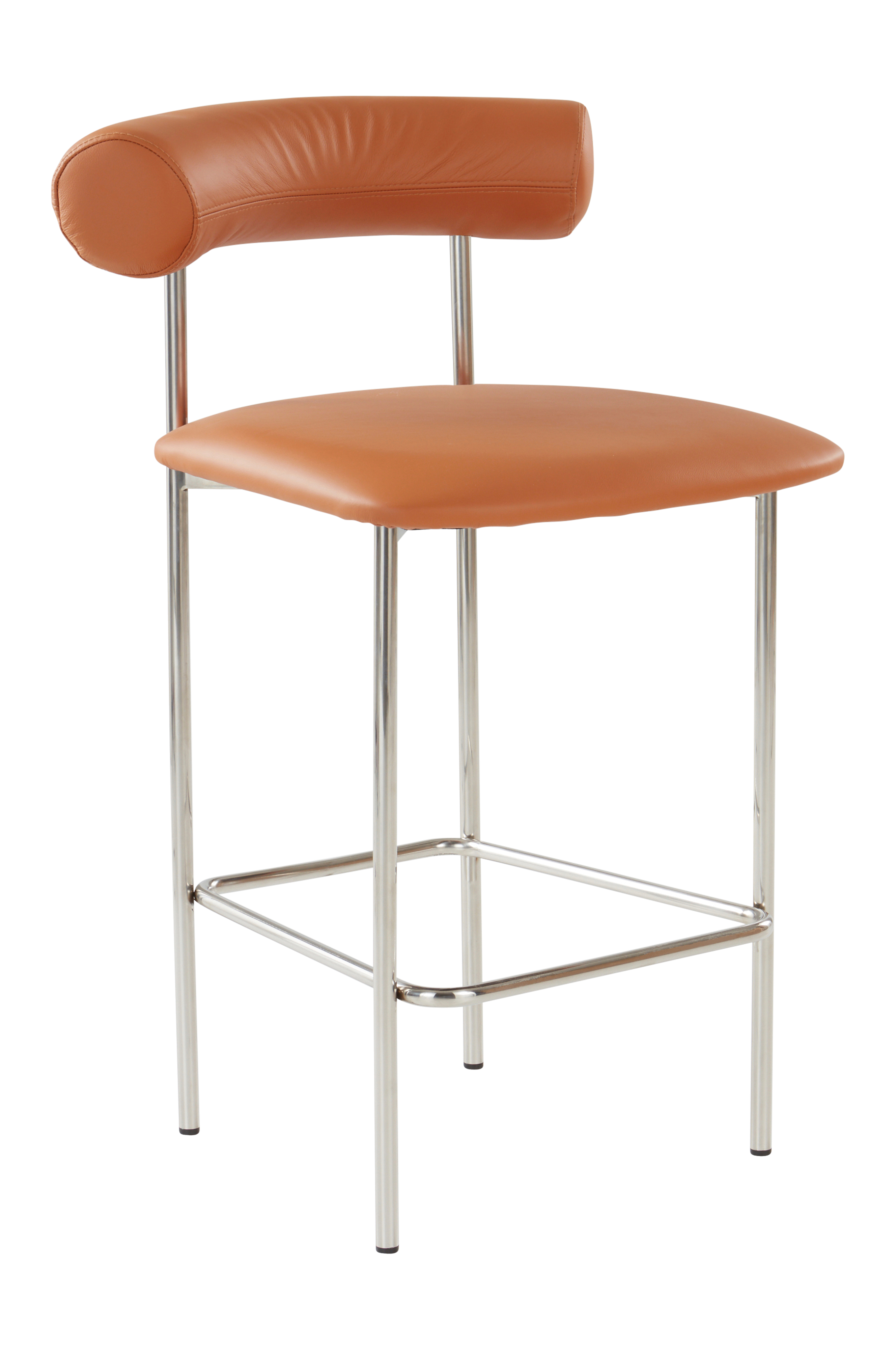Baarituoli, jossa on tyylikäs nahkaverhoilu tyylikkäässä yhdistelmässä kromatun teräksen kanssa. Istuin ja pehmeä, pyöristetty selkänoja on pehmeästi pehmustettu, minkä ansiosta tuolissa on mukava istua, ja se sopii erinomaisesti pitkiin, ihaniin aterioihin. Istuimen runko on valmistettu FSC-sertifioidusta vanerista. Nahka on kestävä materiaali, jonka voit tarvittaessa pyyhkiä helposti pois.
