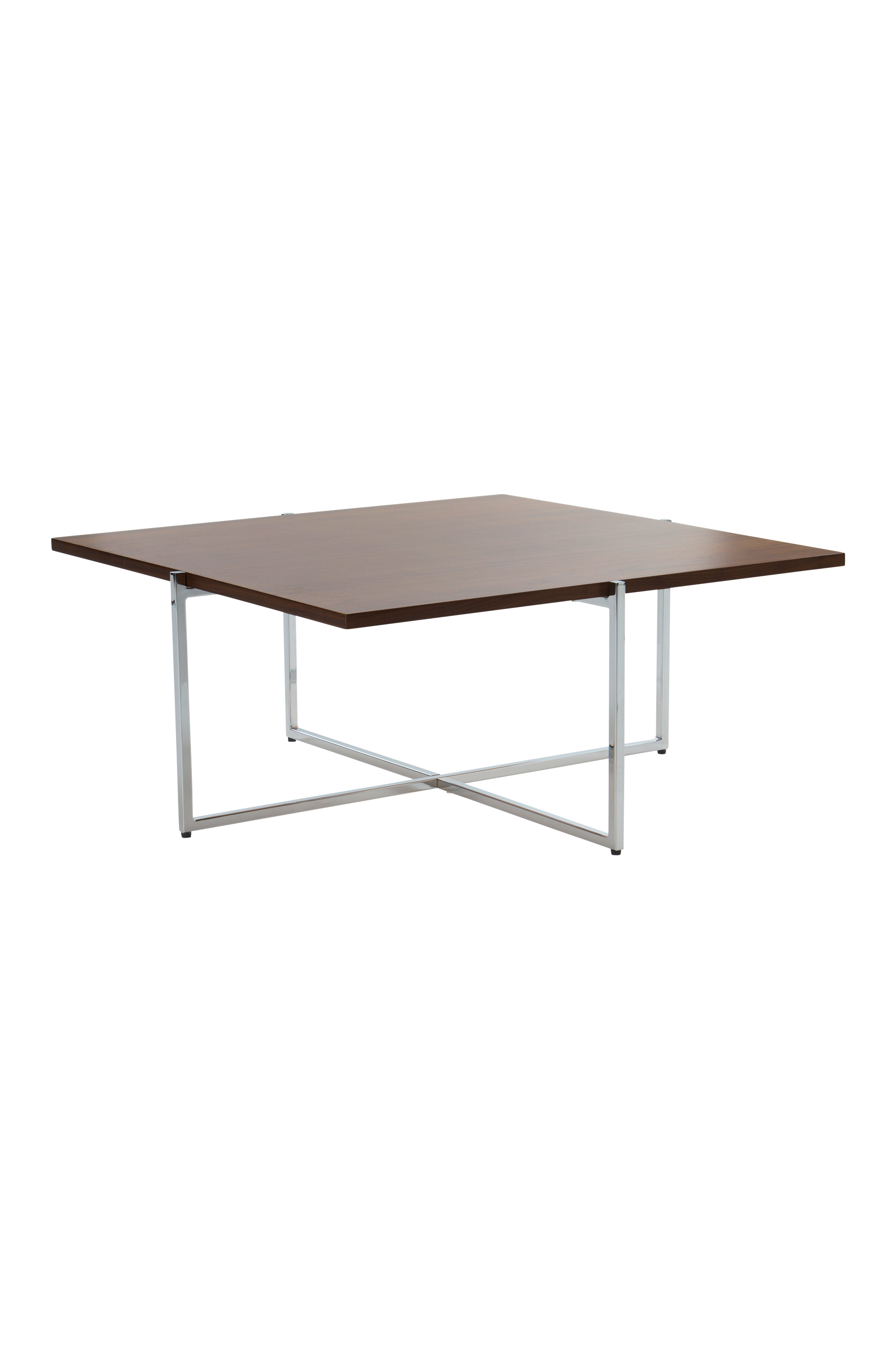 Lisää moderniin kotiisi tyylikäs ilme tällä sohvapöydällä. Pähkinäpuu-viilulla päällystetyssä MDF-pöytälevyssä ja kromatuissa rautajaloissa yhdistyvät toiminnallisuus ja estetiikka saumattomasti. Nosta asuintilaasi tämän nykyaikaisen kappaleen avulla.
